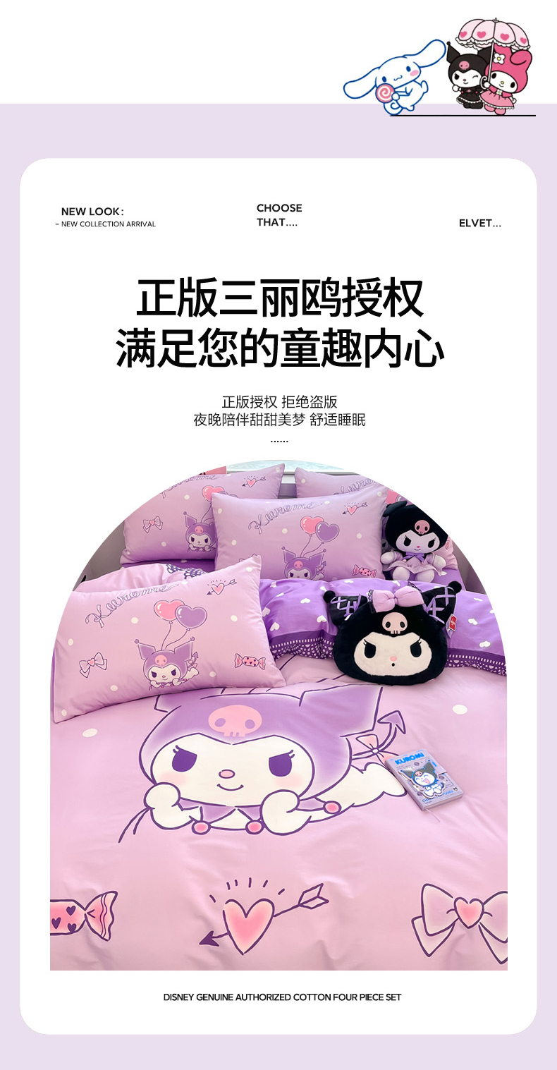 当前位置: 91家纺网 > 商品网购 > 床品套件 > 四件套 > 全棉普通四件套 > 暮思家居 2026新款正版授权三丽鸥大版全棉纯棉数码印花纯棉四件套系列-第一批 大版-梦想库洛米