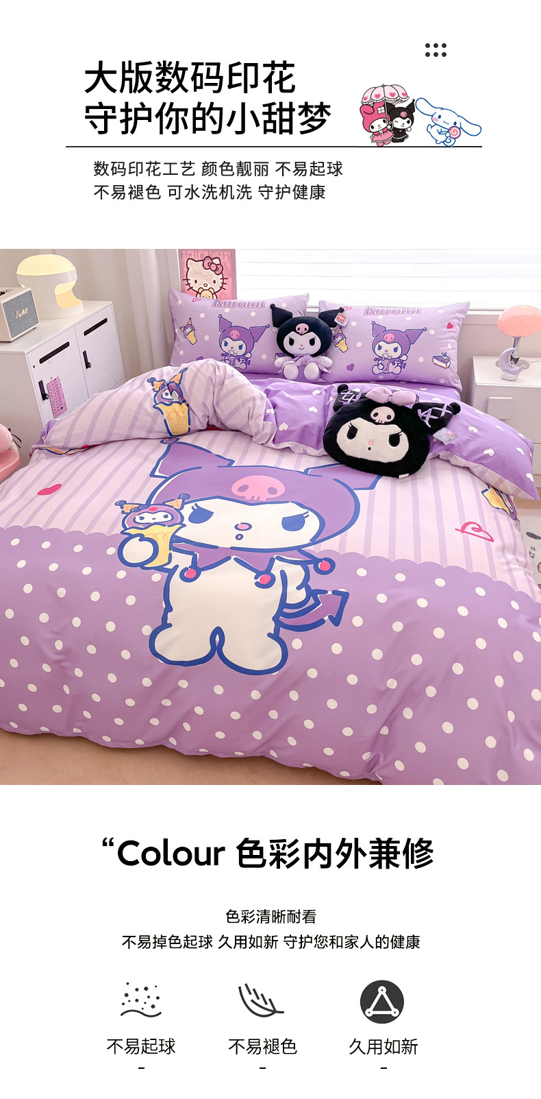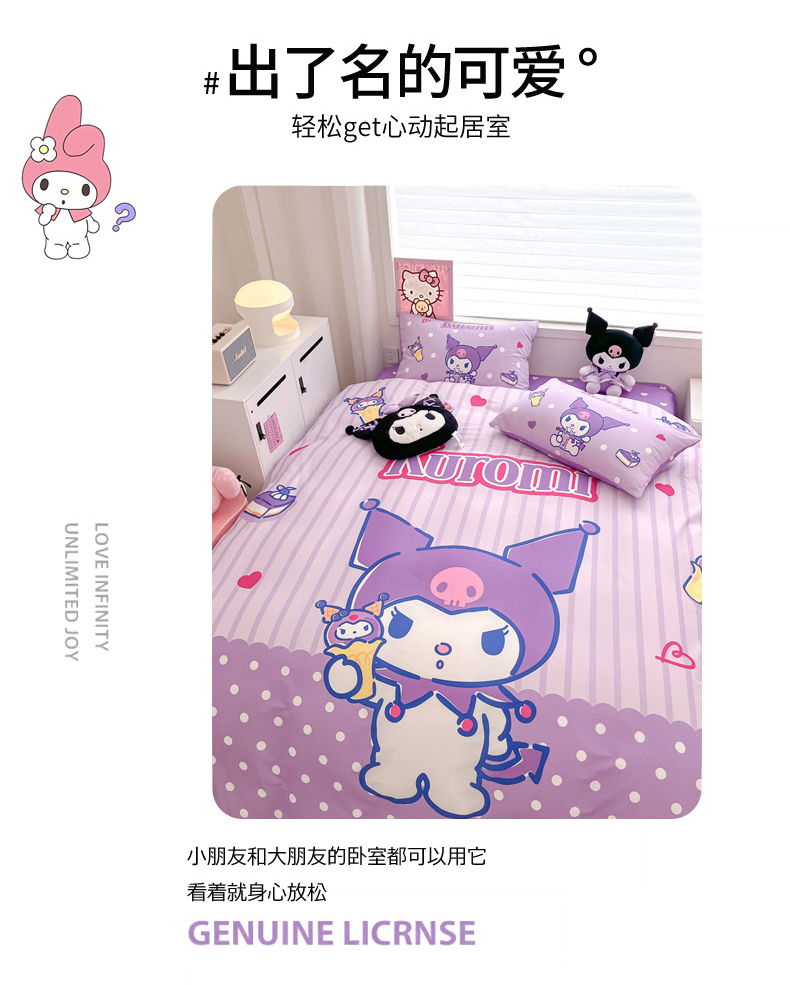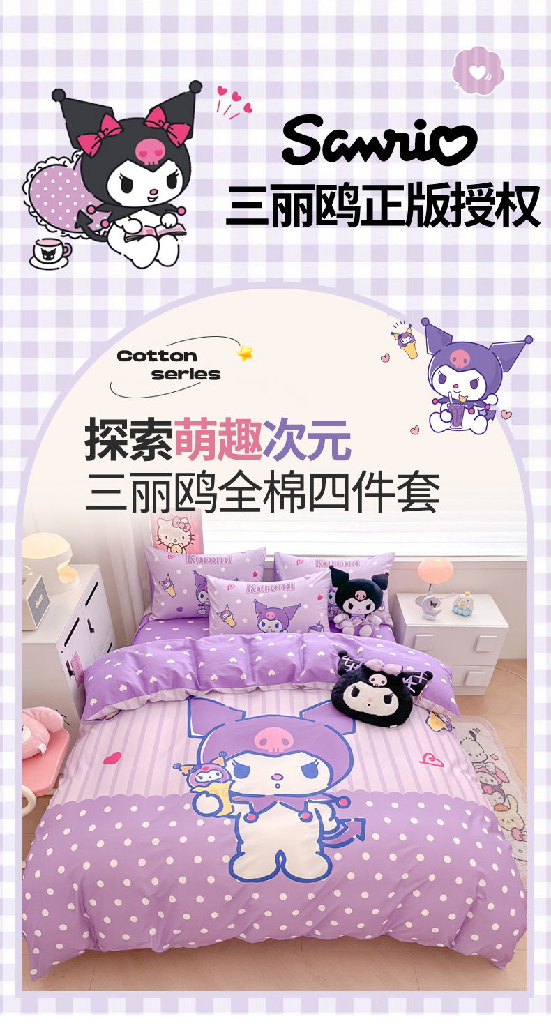 当前位置: 91家纺网 > 商品网购 > 床品套件 > 四件套 > 全棉普通四件套 > 暮思家居 2026新款正版授权三丽鸥大版全棉纯棉数码印花纯棉四件套系列-第一批 大版-甜筒库洛米