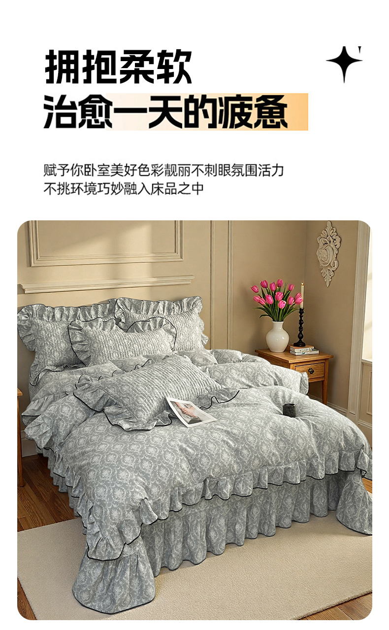 当前位置: 91家纺网 > 商品网购 > 床品套件 > 四件套 > 全棉普通四件套 > 宜凡家纺 2026新款全棉夹棉印花床盖款四件套 安洛特 灰