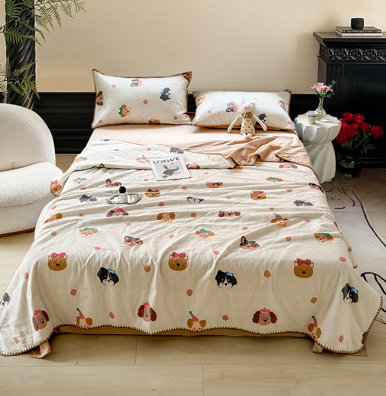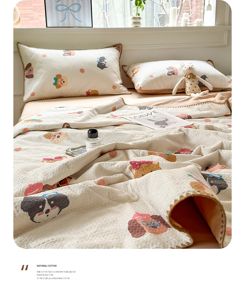 (总)雯雨家纺 2026新款里外全棉华夫格三角针夏被,简森蓝,瑞乐兰,苏潘达灰,瑞乐棕,萌动时光咖,萌动时光,欢乐派对,流白小狗-米