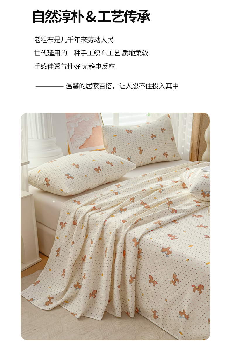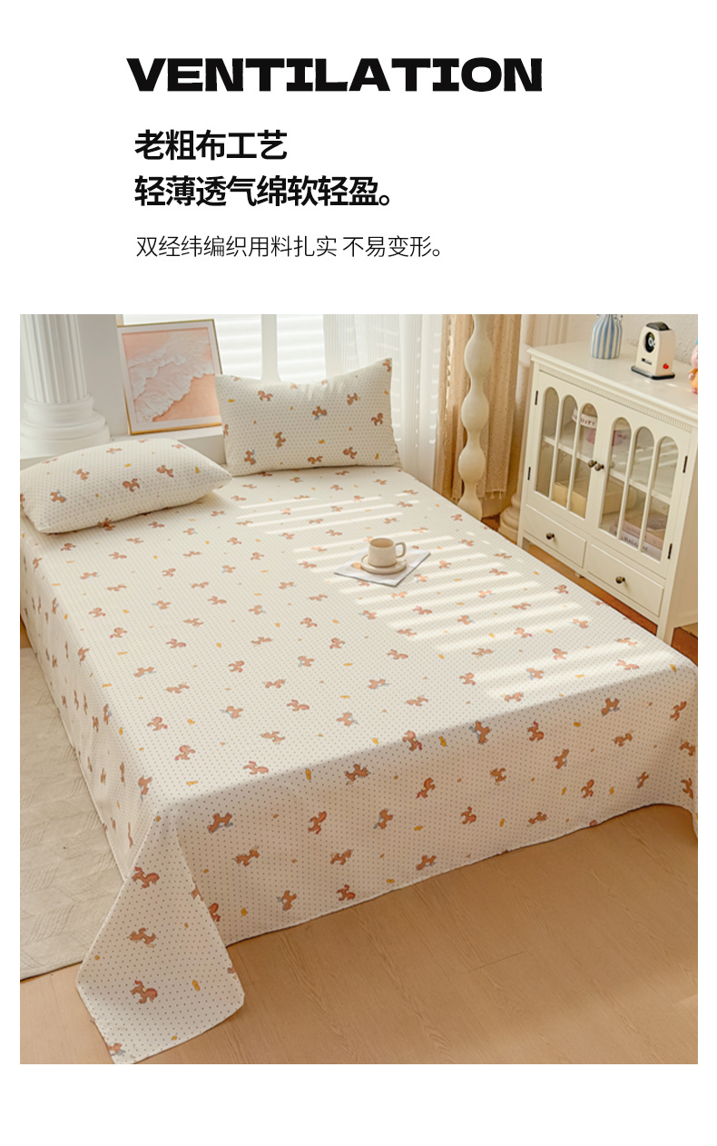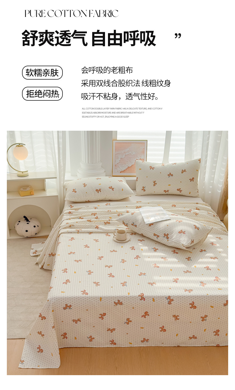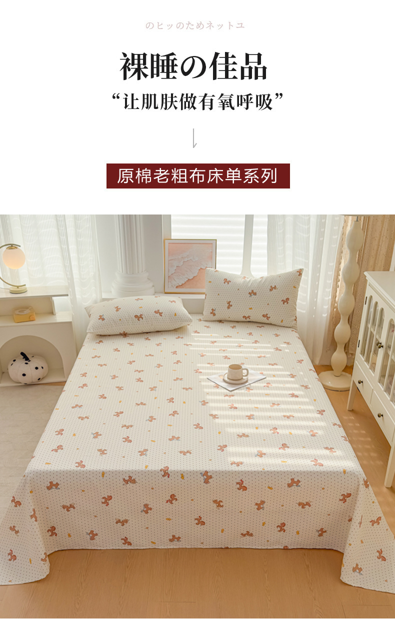 (总)爱彼家纺 2026夏季新款亲肤原棉老粗布透气印花床单单件热门热门床单款新升级-细沙老粗布,白多花园,波点蝴蝶结,纯绿,橄榄绿,花海,橘色条纹,卡其,蓝白条,蓝菊绘,绿果花香,马上发财,摩洛哥小狗,甜樱萌犬,小熊之家,星海蓝,星空灰,约定条纹,竹小熊