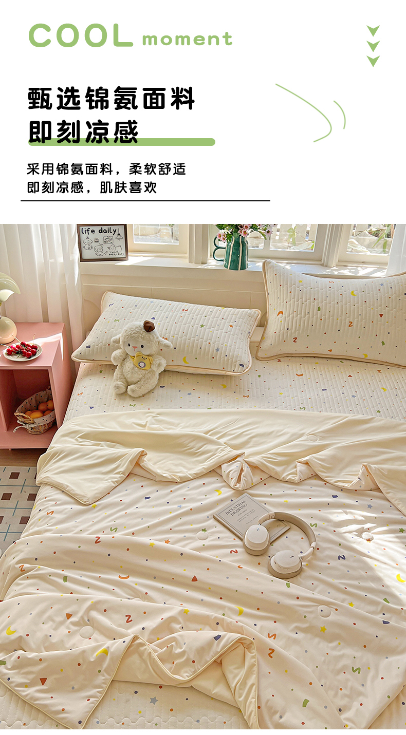 当前位置: 91家纺网 > 商品网购 > 床品套件 > 四件套 > 夏被四件套 > 卡普家居 2026新款A类锦氨凉感印花夏被床盖床单款四件套 幻彩星月