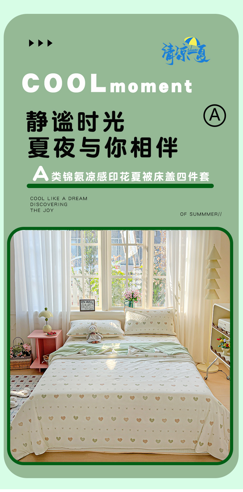 当前位置: 91家纺网 > 商品网购 > 床品套件 > 四件套 > 夏被四件套 > 卡普家居 2026新款A类锦氨凉感印花夏被床盖床单款四件套 青提奶冻