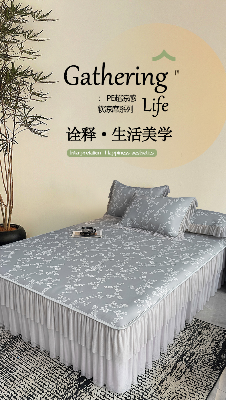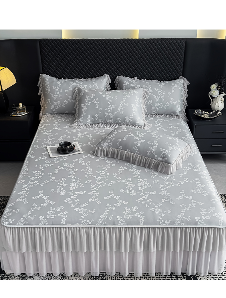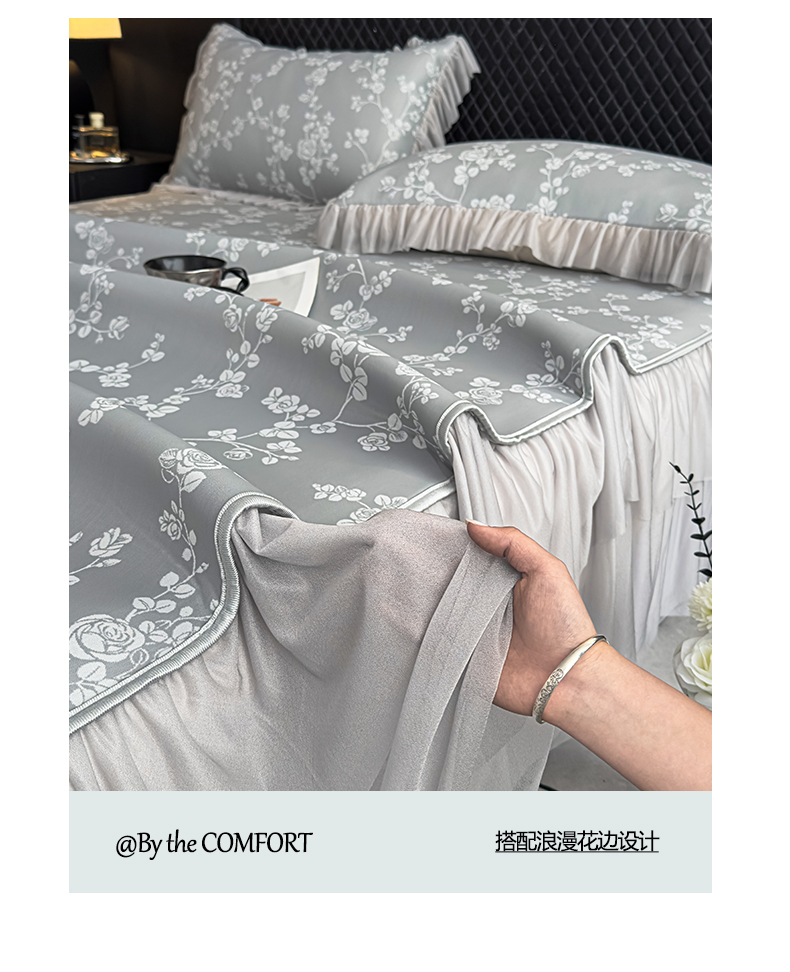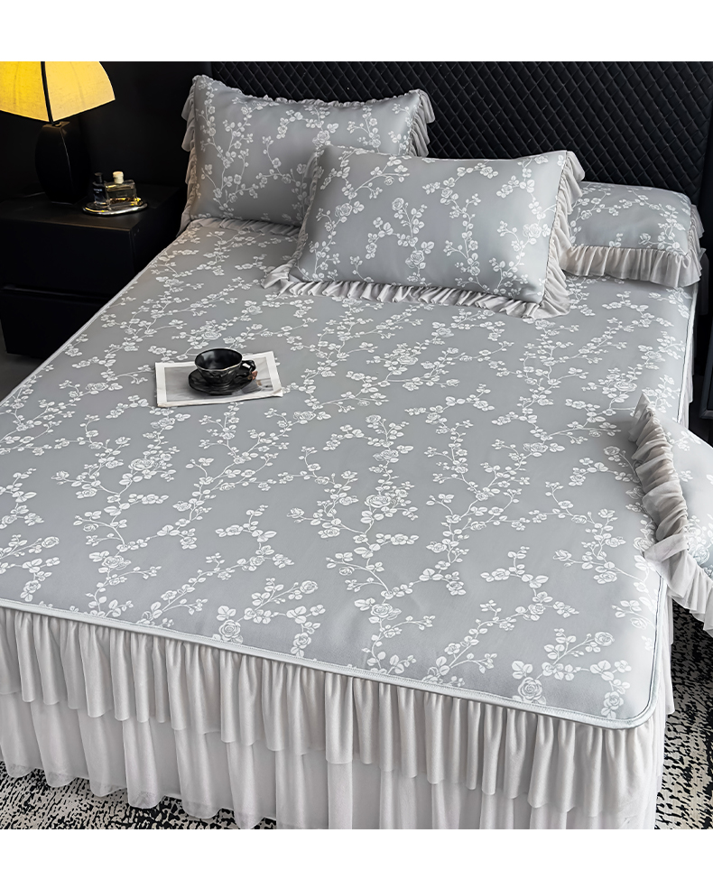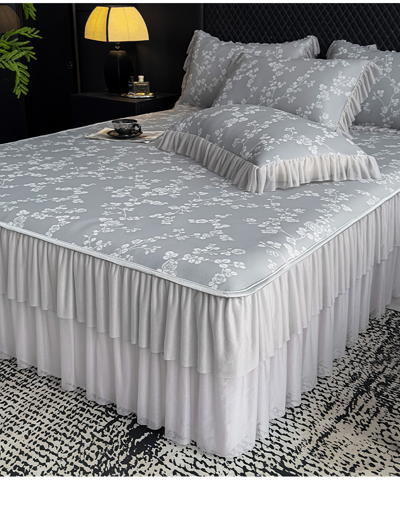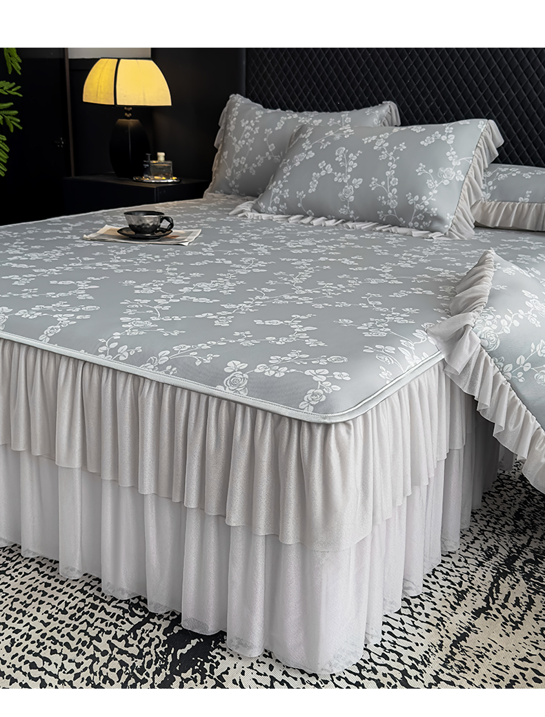 当前位置: 91家纺网 > 商品网购 > 床上用品 > 凉席 > 家之硕家纺 2026春夏新款凉感提花床裙款凉席席子 蔷薇玫瑰--深灰