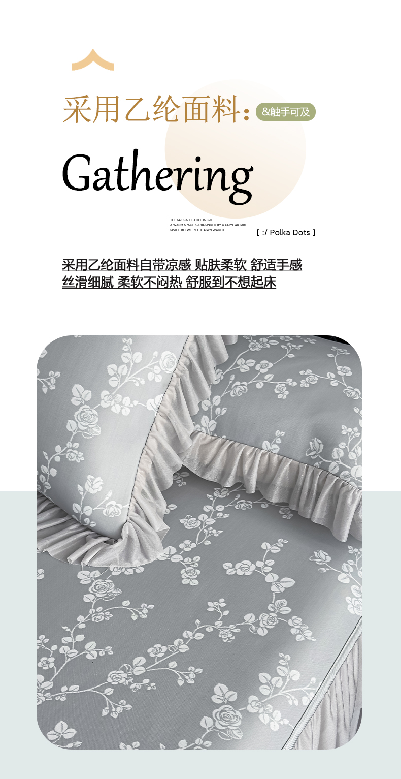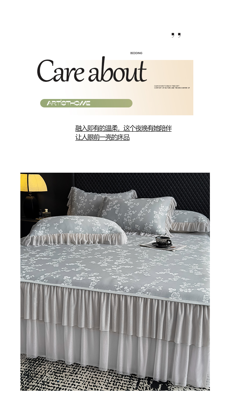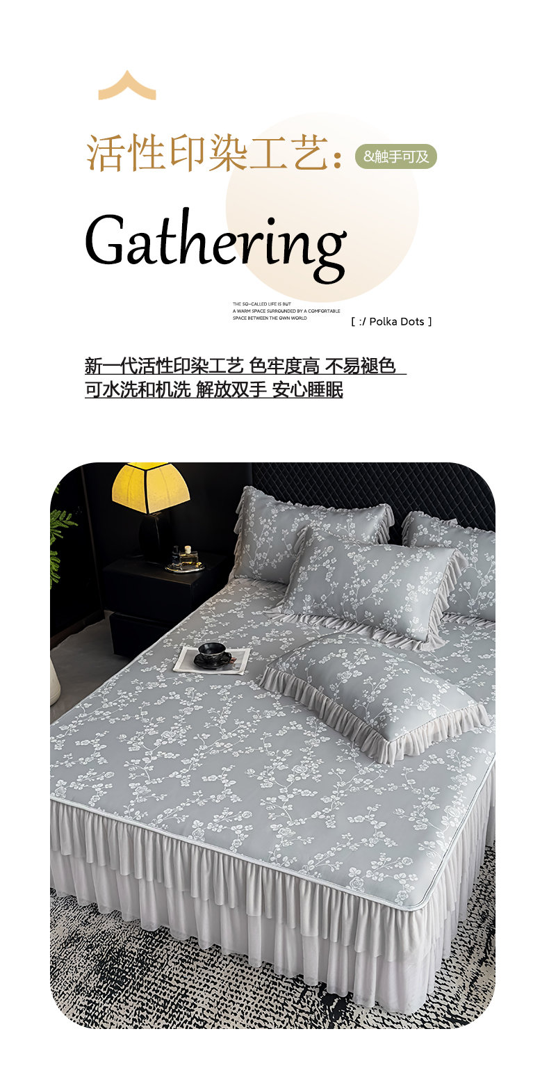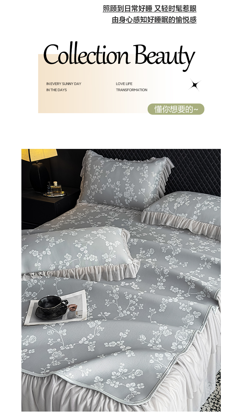 当前位置: 91家纺网 > 商品网购 > 床上用品 > 凉席 > 家之硕家纺 2026春夏新款凉感提花床裙款凉席席子 蔷薇玫瑰--深灰