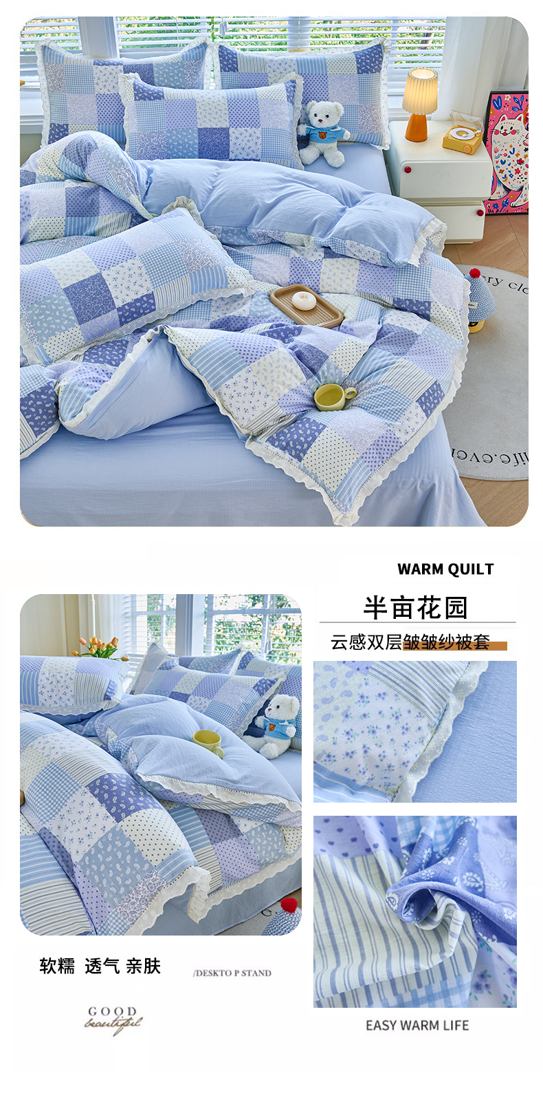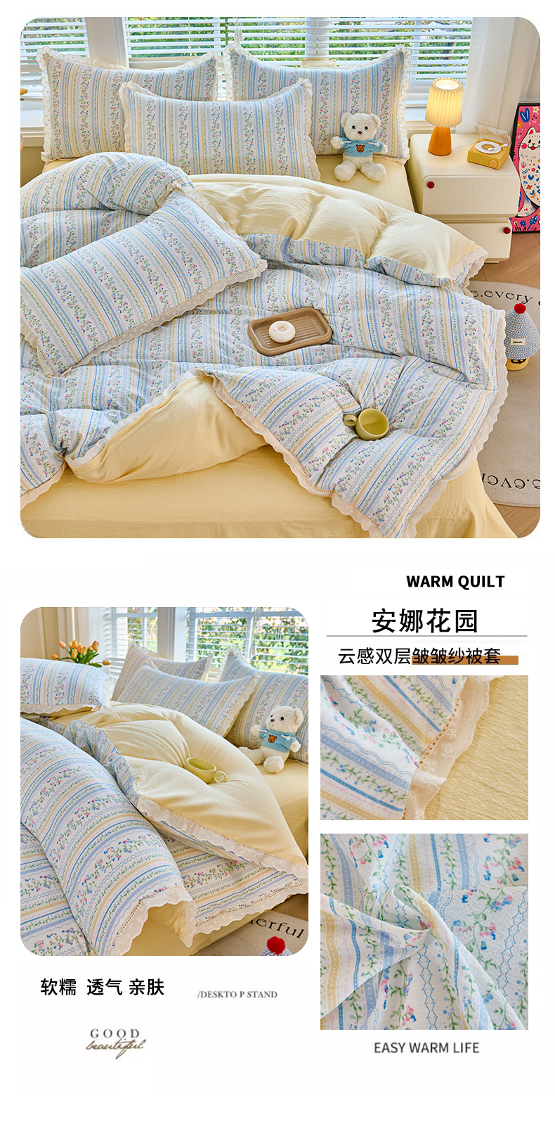 商品名称:(总)钰锦珀家纺 2026春夏新款云感皱皱纱镂空花边三件套四件套