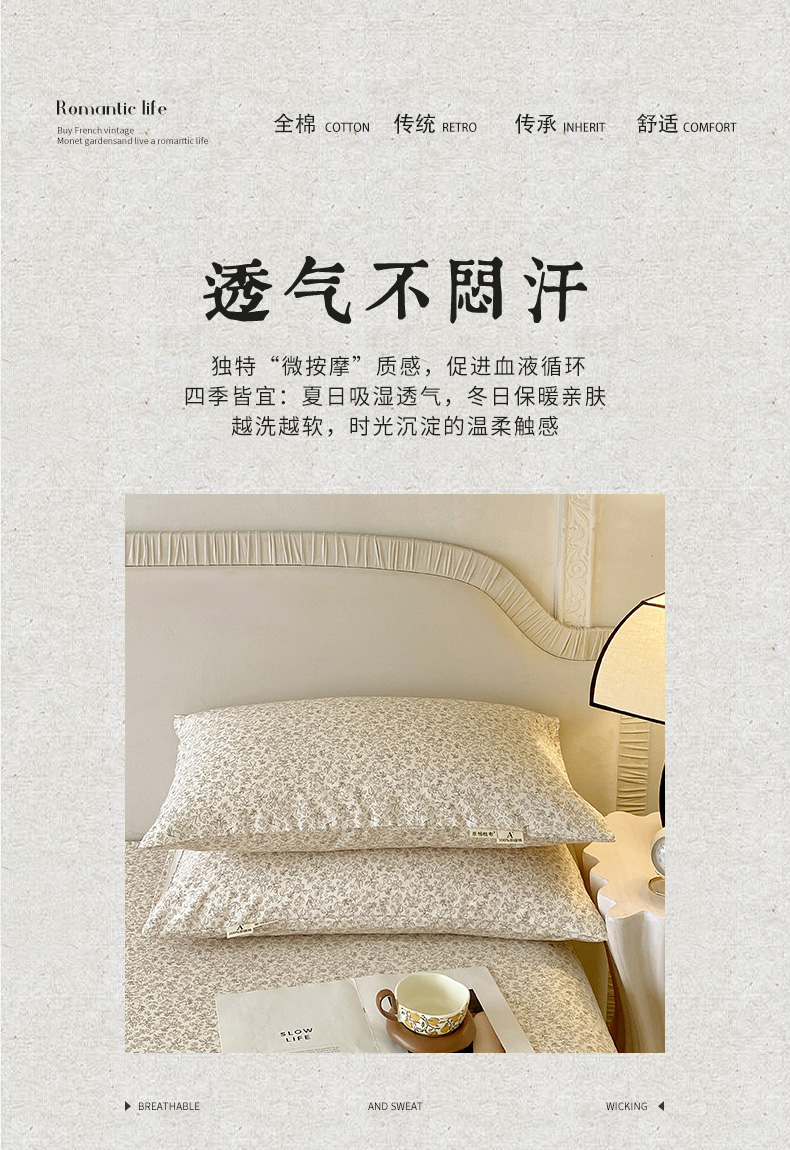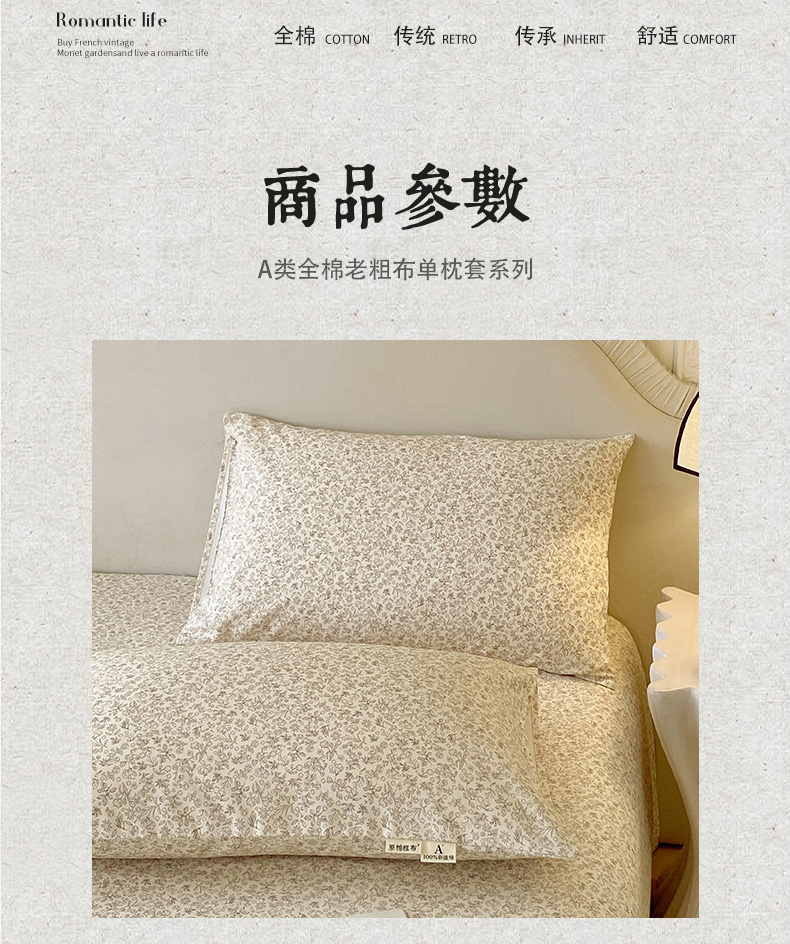 商品名称:春皖家纺 2026新款全棉老粗布普通款单枕套枕套单件 醒风