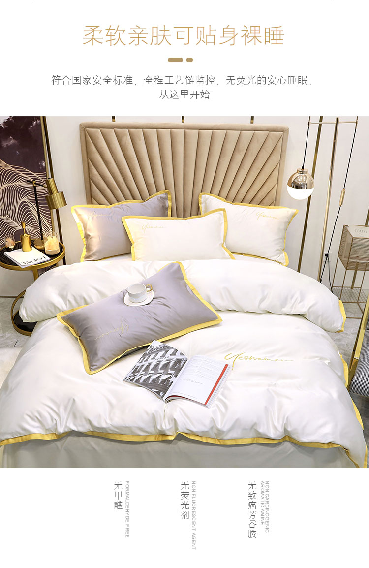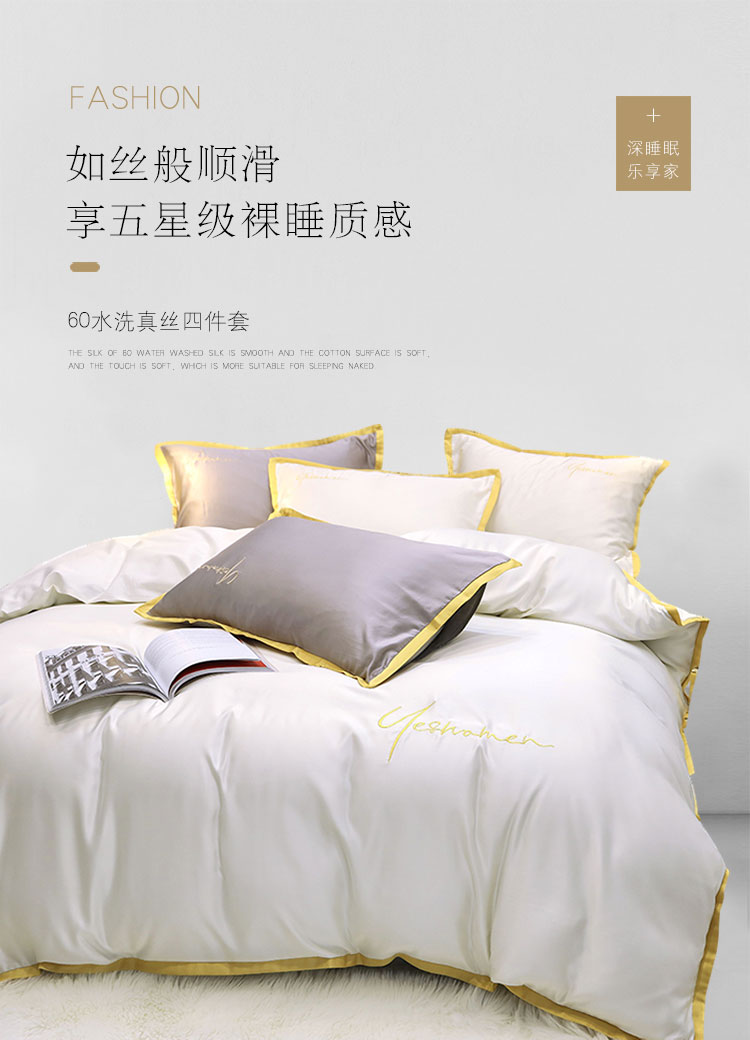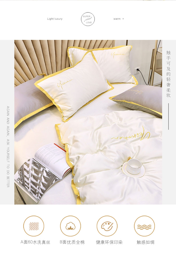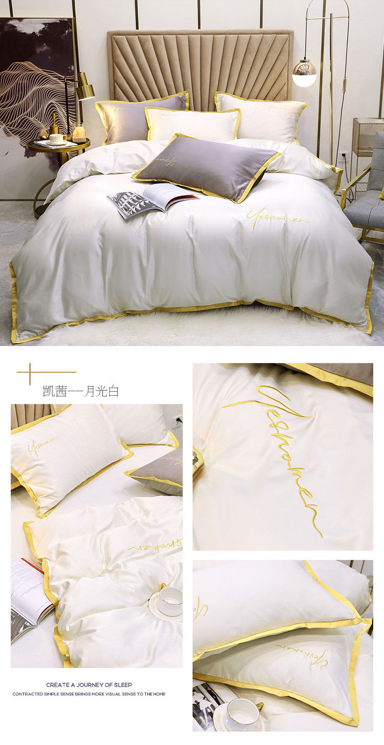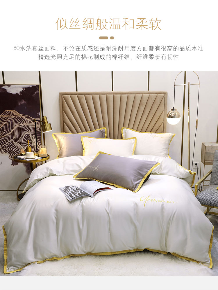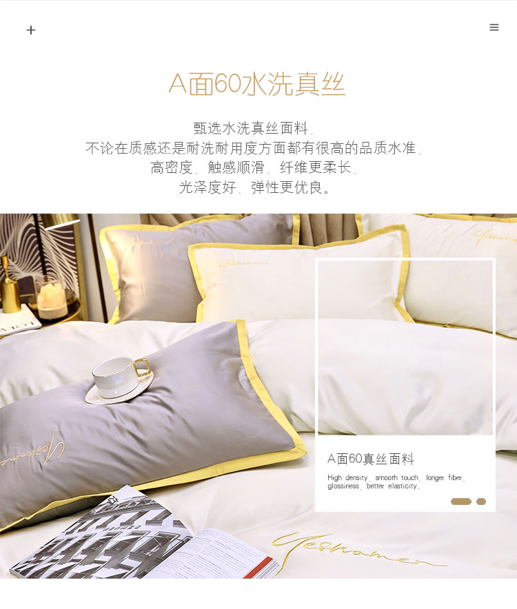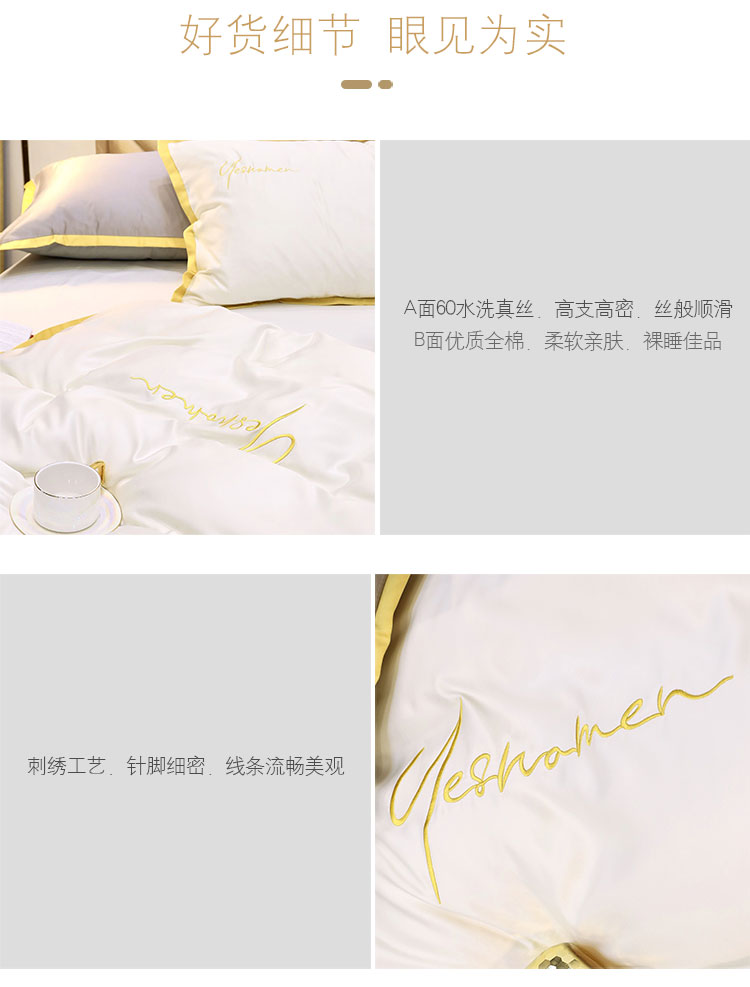 商品名称:安妮家居 2020新款全棉水洗真丝凯茜四件套新实拍 月光白