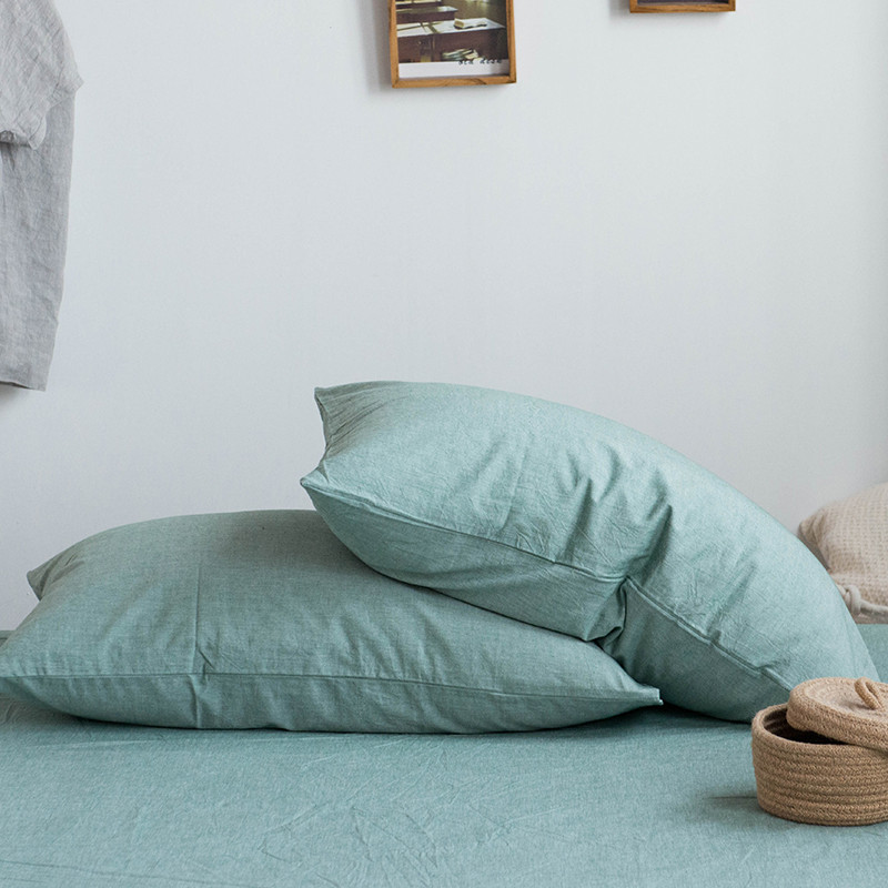 尚品本色 2022新款水洗棉套件系列-单枕套 纯绿色/对