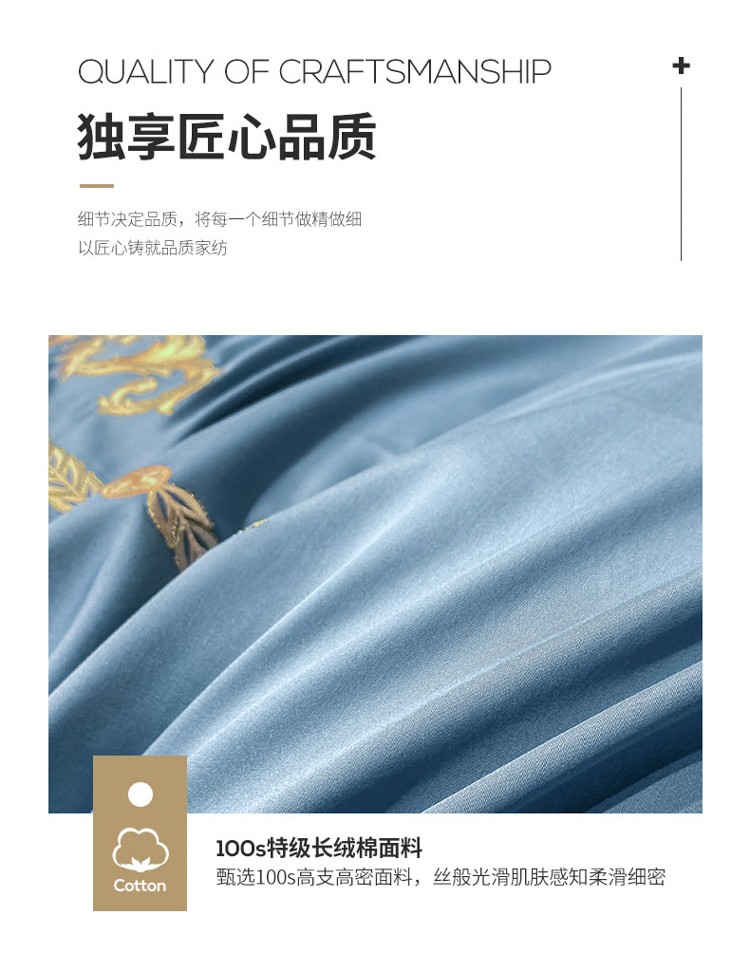 2023新款全棉四件套-富贵花 星辰蓝,星辰蓝