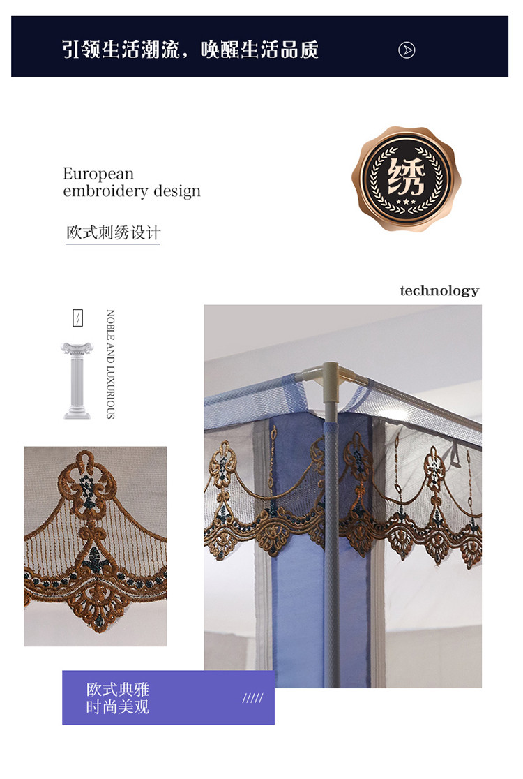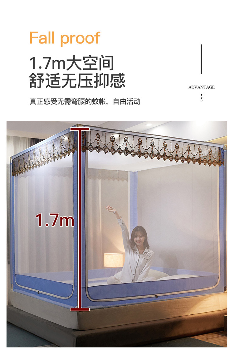 当前位置: 91家纺网 > 商品网购 > 床上用品 > 蚊帐 > 坐床式蚊帐 > 2025升级连接好白色烤漆支架加密防蚊防摔防尘多功能坐床蚊帐-刺绣花边系列 风韵-天蓝