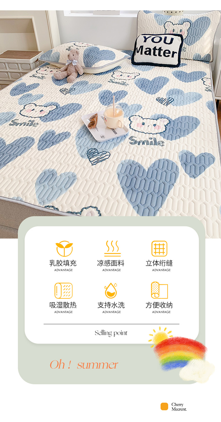 澳萝拉 2022新款凉感丝乳胶凉席-蓝心小熊,蓝心小熊
