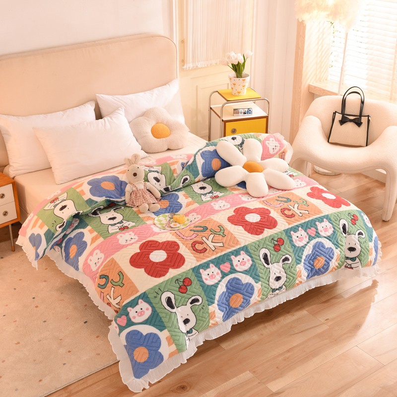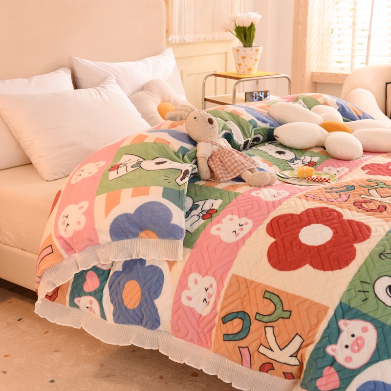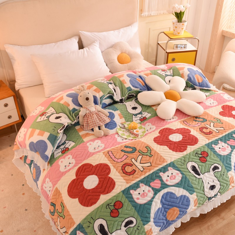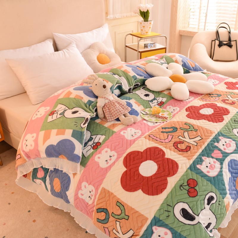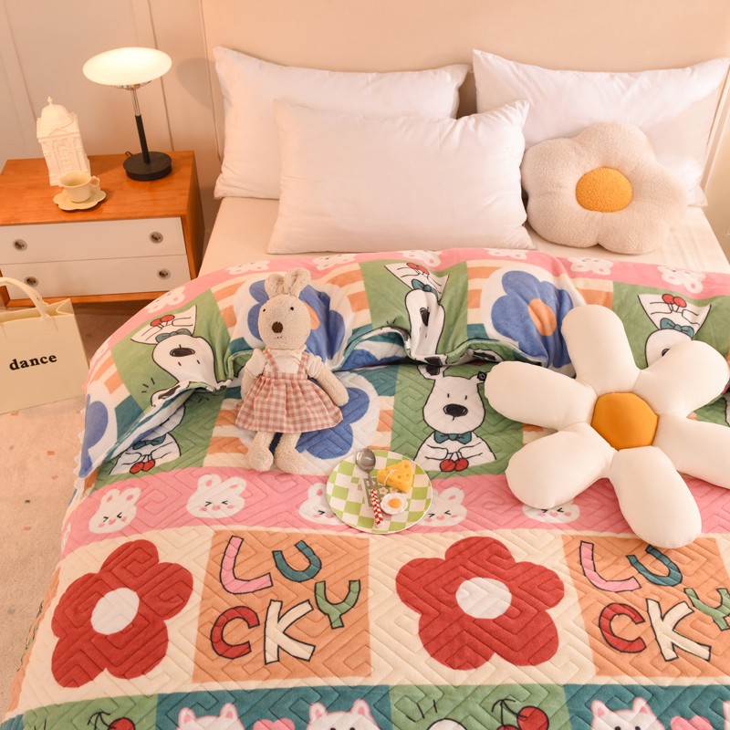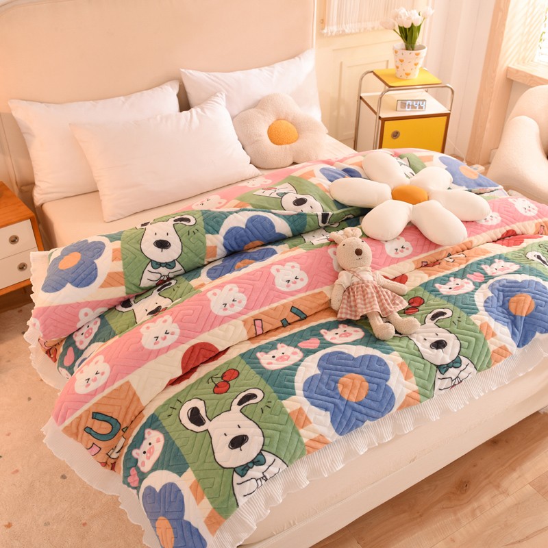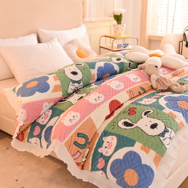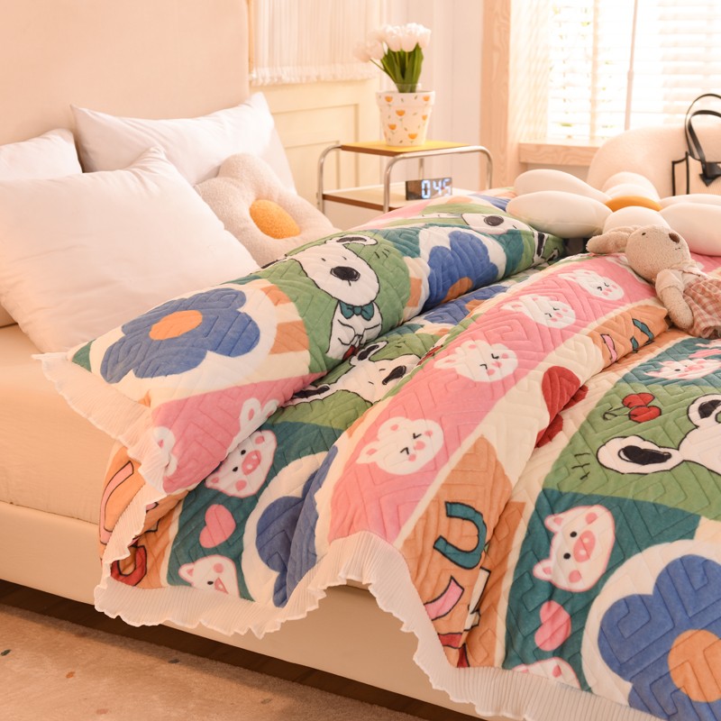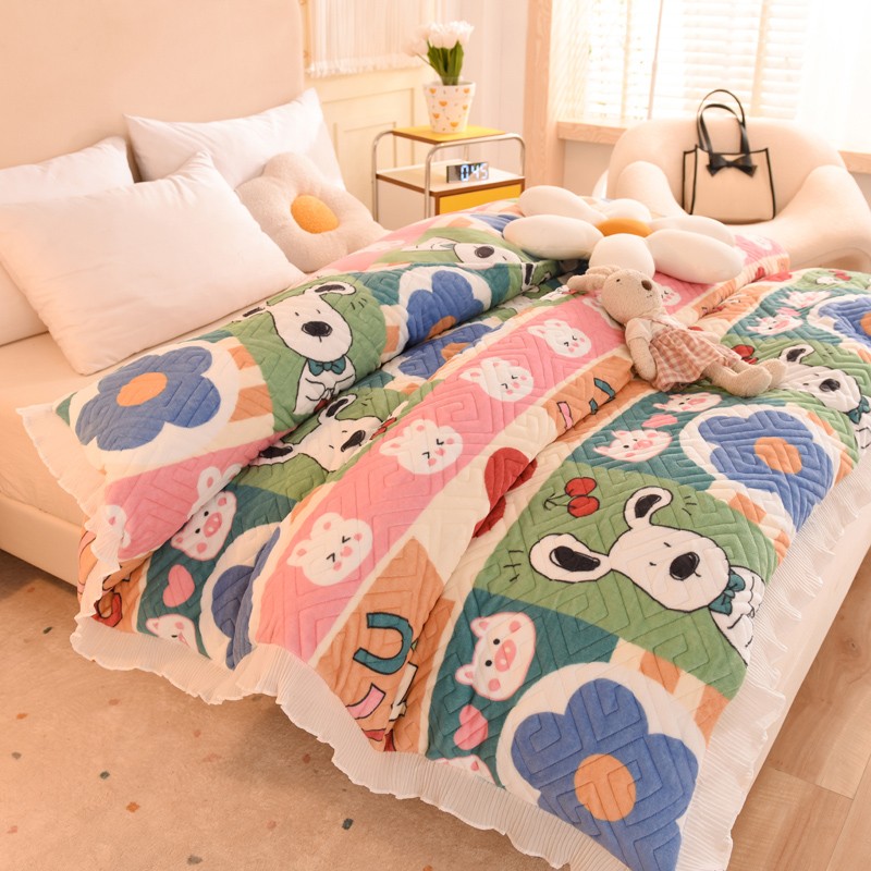 2025新款牛奶绒印花夹棉花边 单品被套 萌宠跳跳