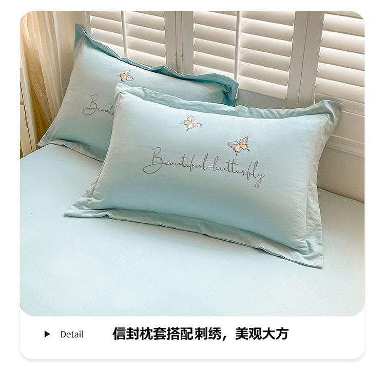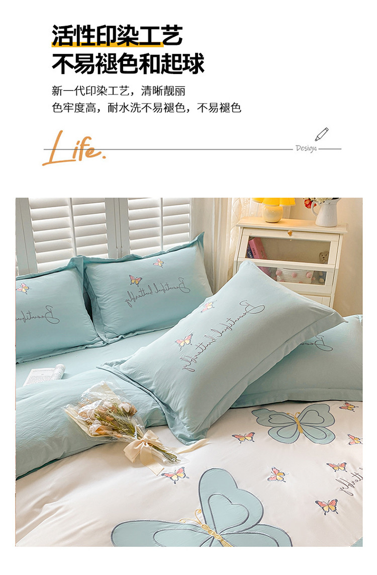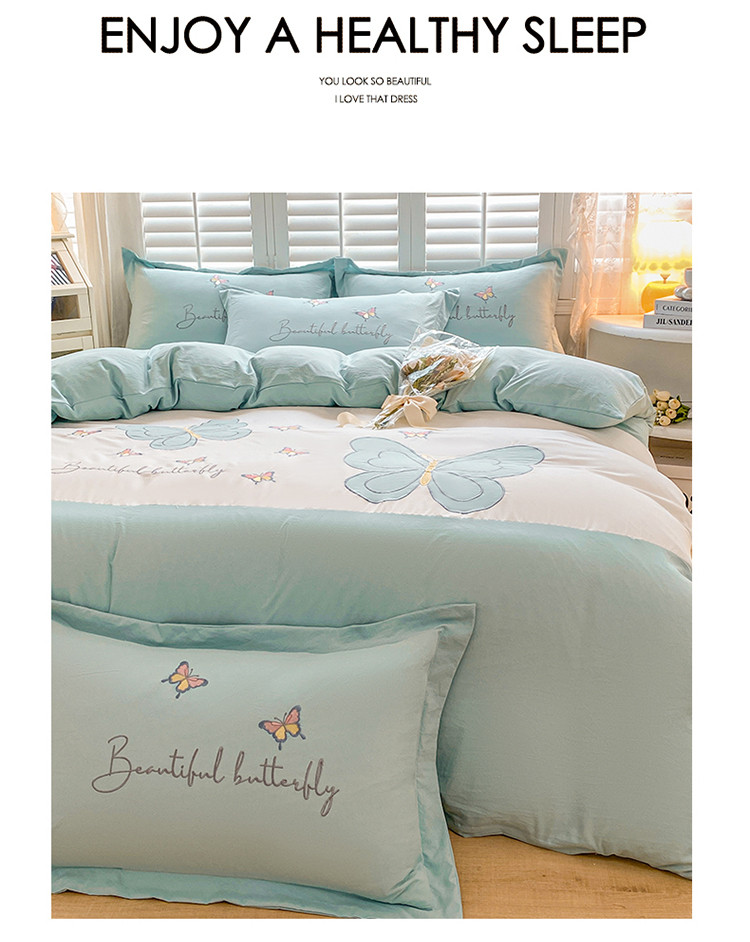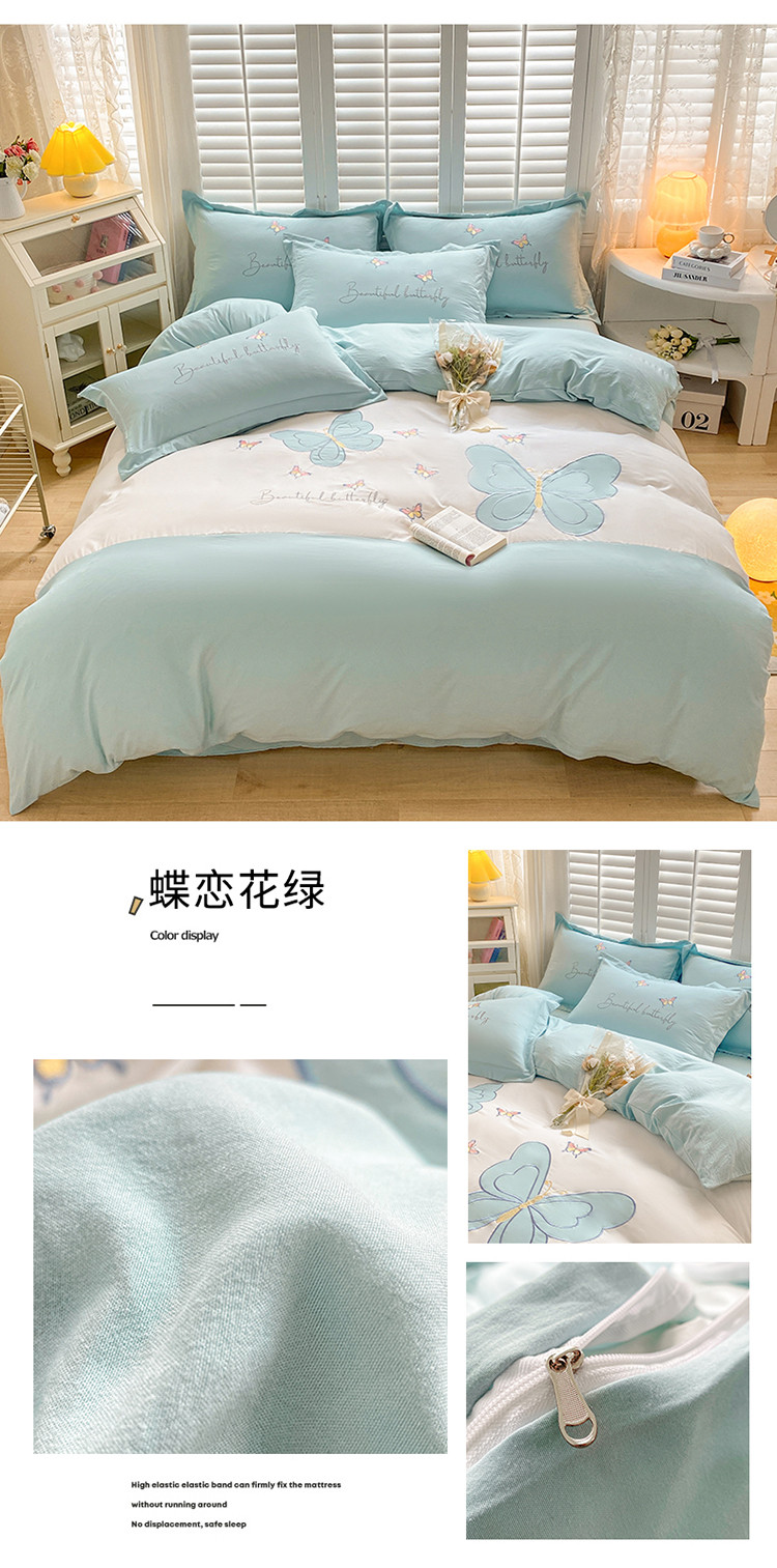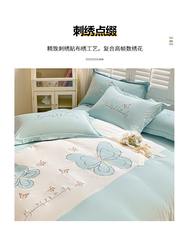 当前位置: 91家纺网 > 商品网购 > 床品套件 > 四件套 > 普通磨毛四件套 > 你好美丽 2025新款水洗磨毛蝴蝶刺绣三拼四件套 蝶恋花绿