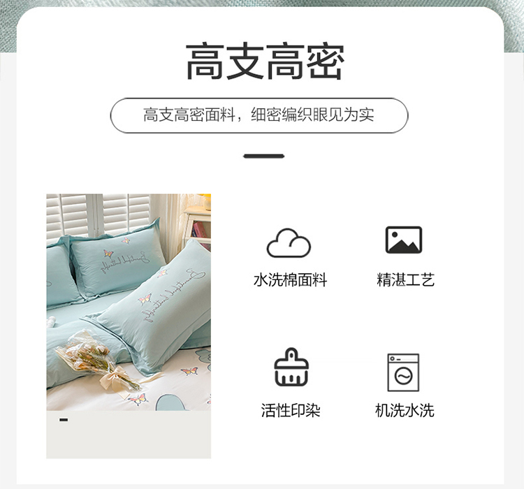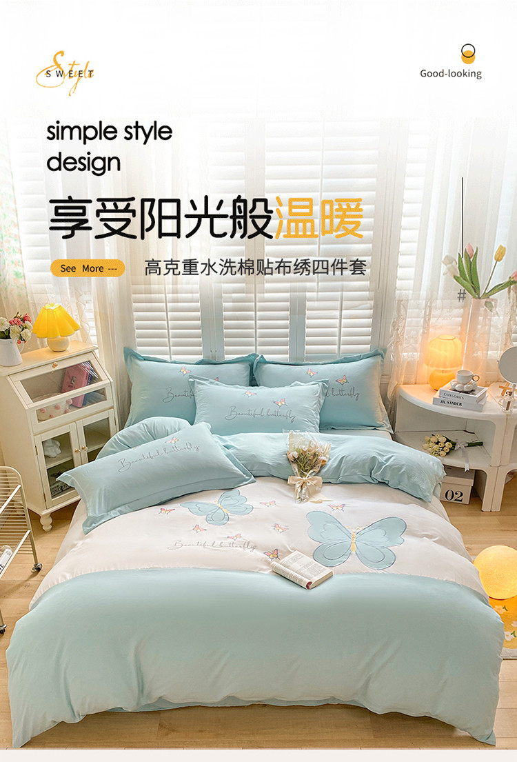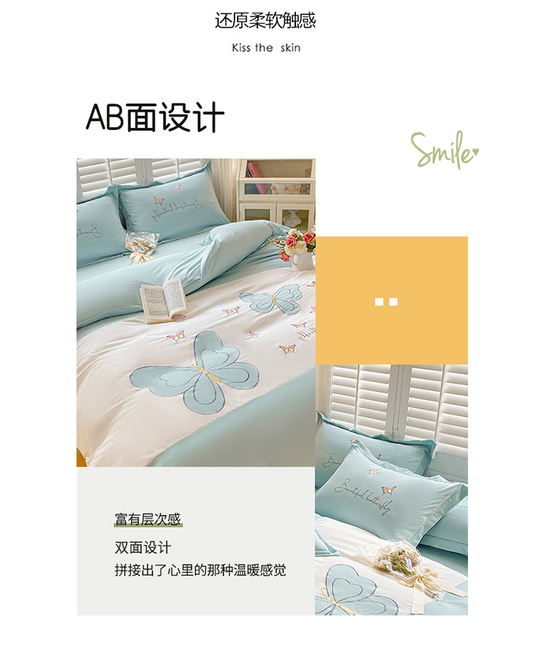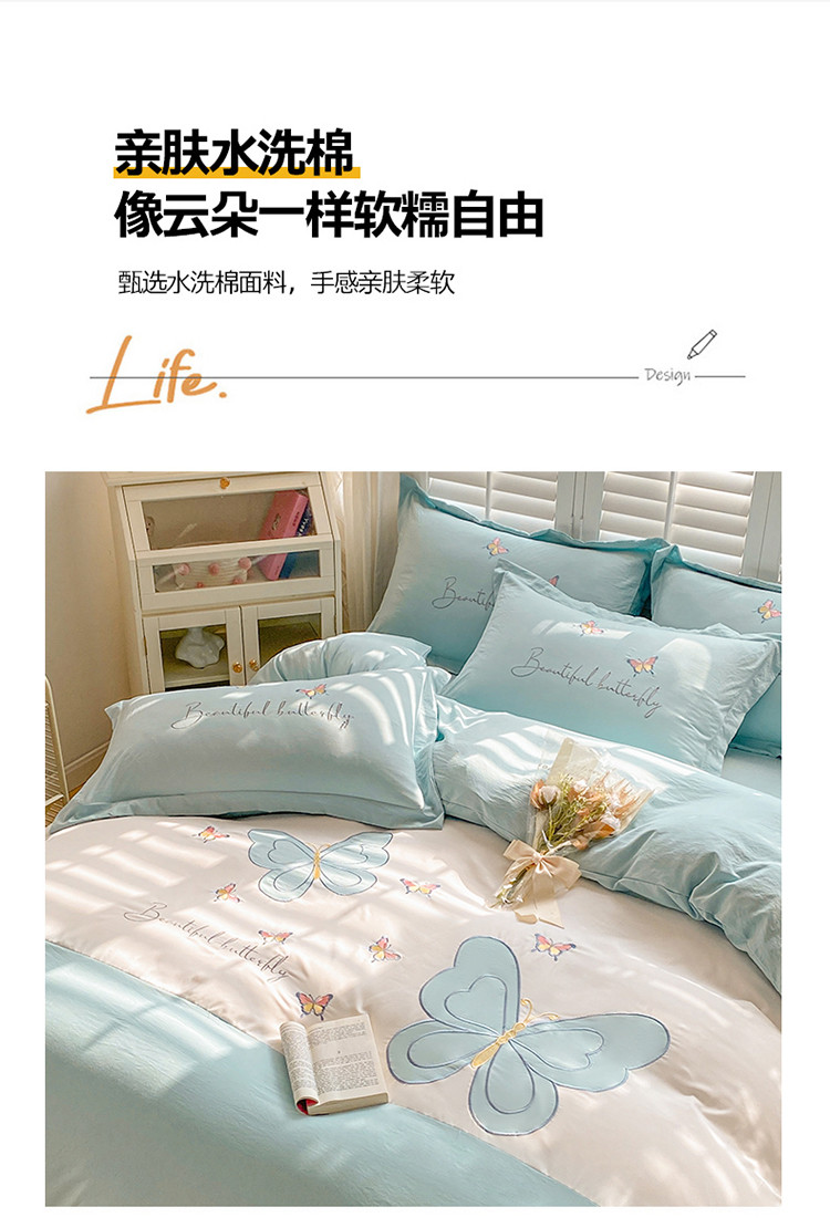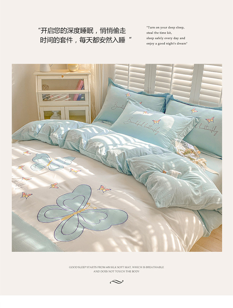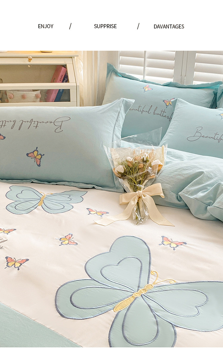 当前位置: 91家纺网 > 商品网购 > 床品套件 > 四件套 > 普通磨毛四件套 > 你好美丽 2025新款水洗磨毛蝴蝶刺绣三拼四件套 蝶恋花绿