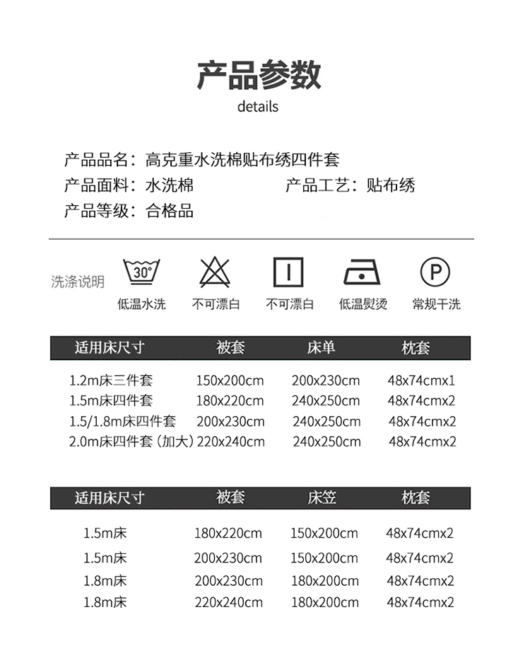 1.5m床单款四件套(被套200x230) | ¥75.00 |