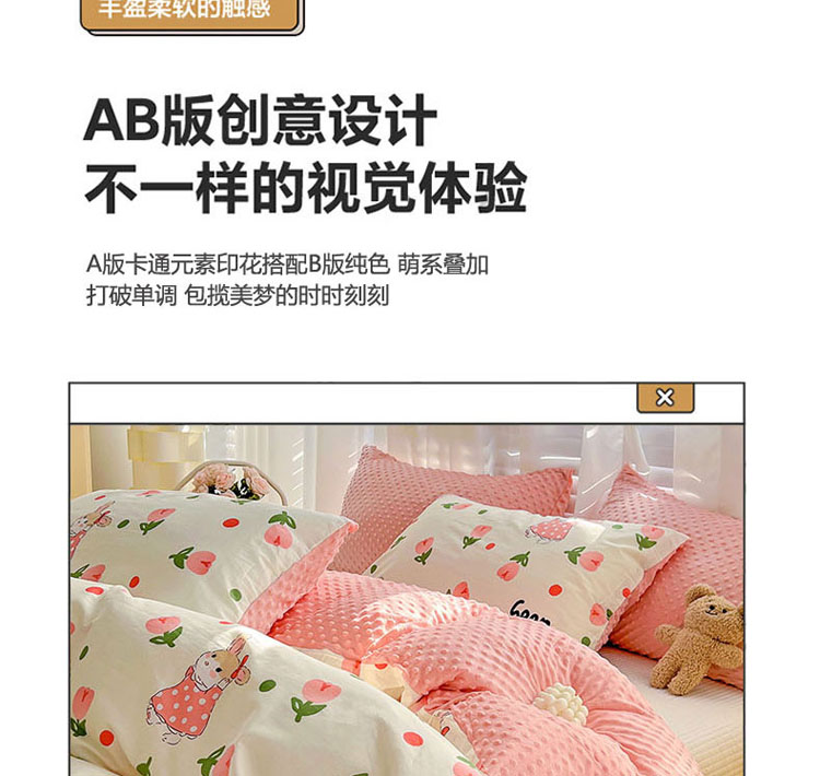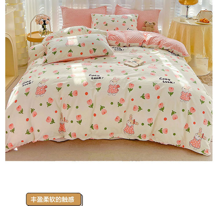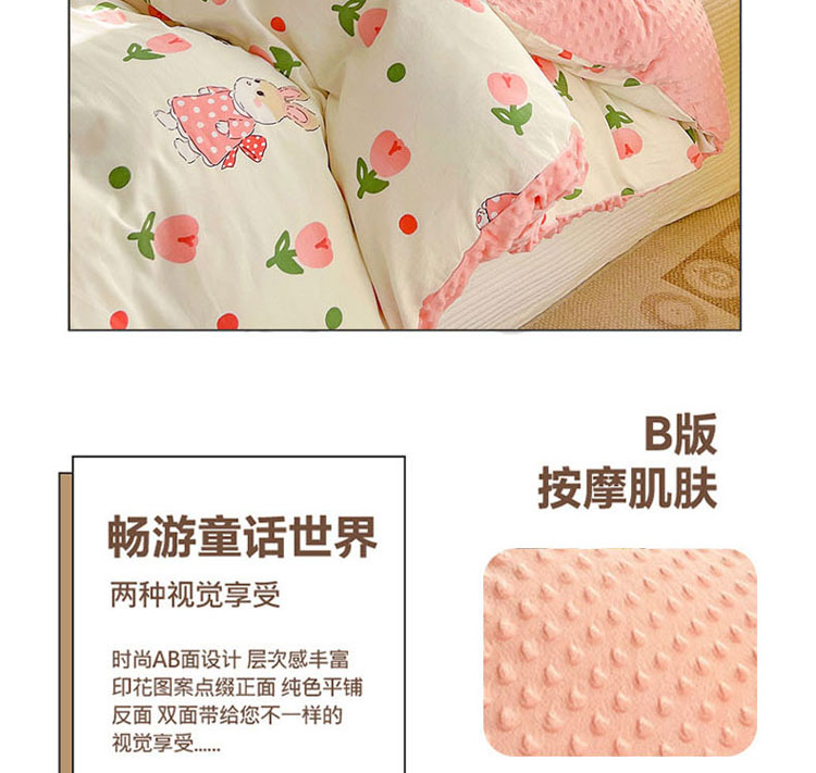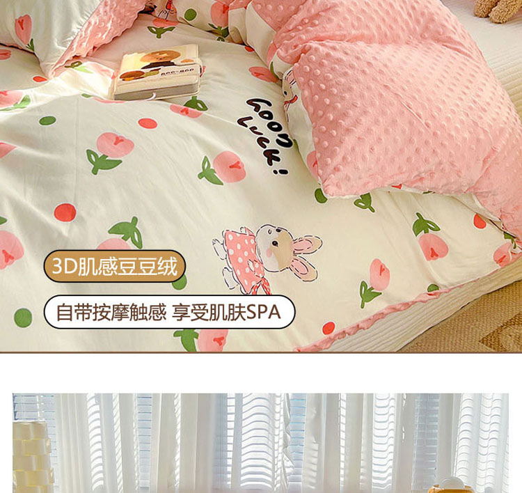 梦家居 2023新款全棉加安抚豆豆绒被套两件套三件套 郁金花兔