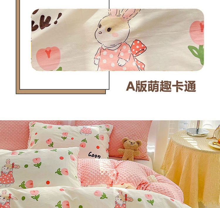 商品名称:梦家居 2023新款全棉加安抚豆豆绒被套两件套三件套 郁金花兔