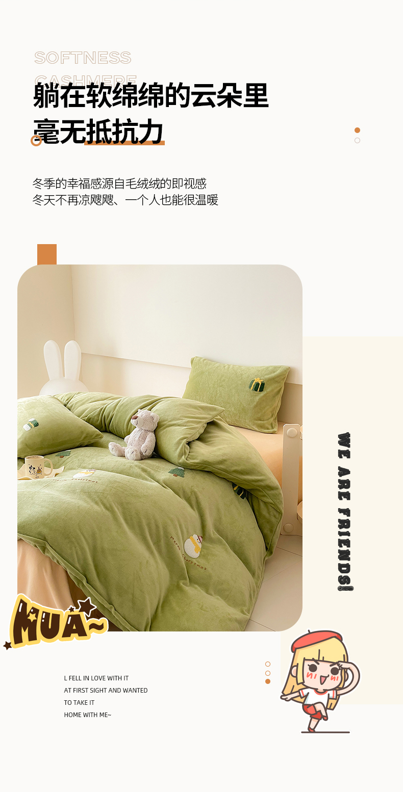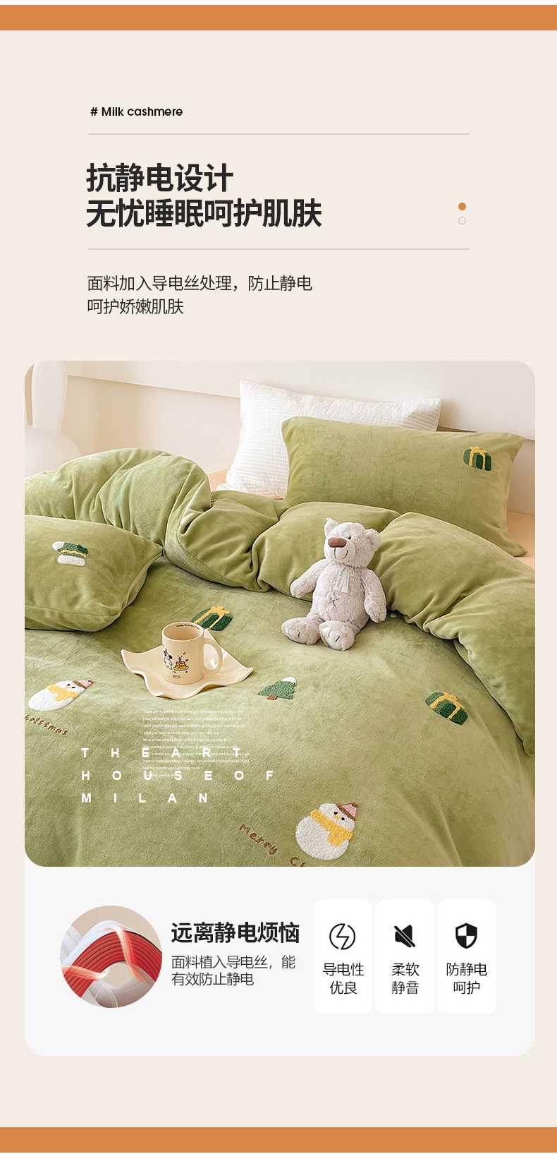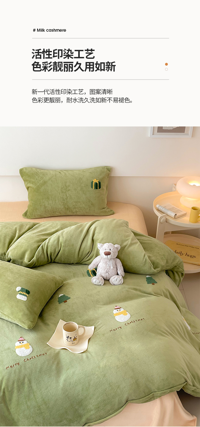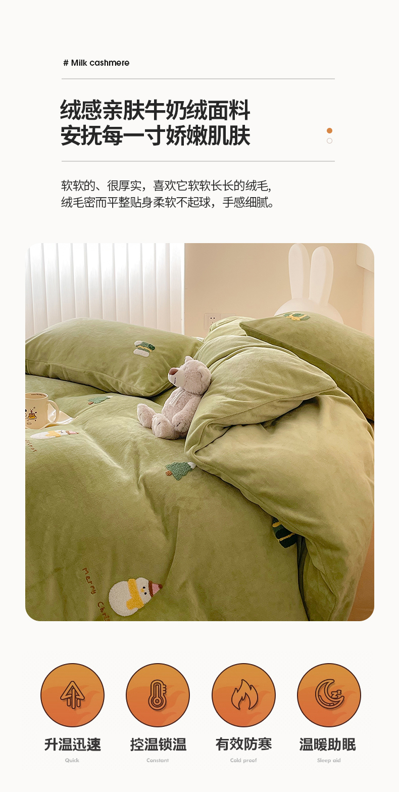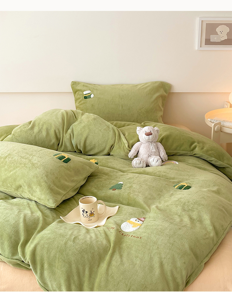 商品名称:沐棉 2023新款高克重牛奶绒毛巾绣四件套 快乐圣诞-绿