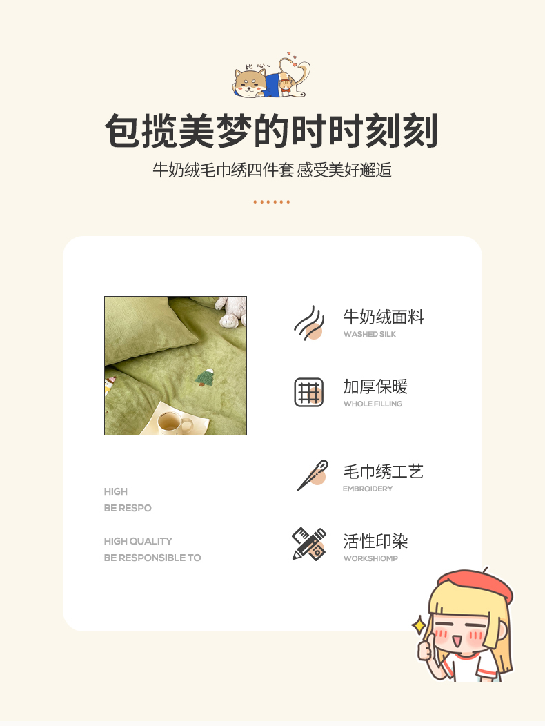 (总)沐棉 2024新款纯色牛奶绒毛巾绣款四件套,彩色蝴蝶,嘟嘟鱼,开心派对-咖,开心派对-兰,快乐圣诞-绿,快乐圣诞-米,熊猫-灰,熊猫-米