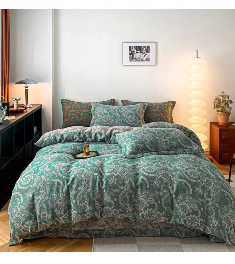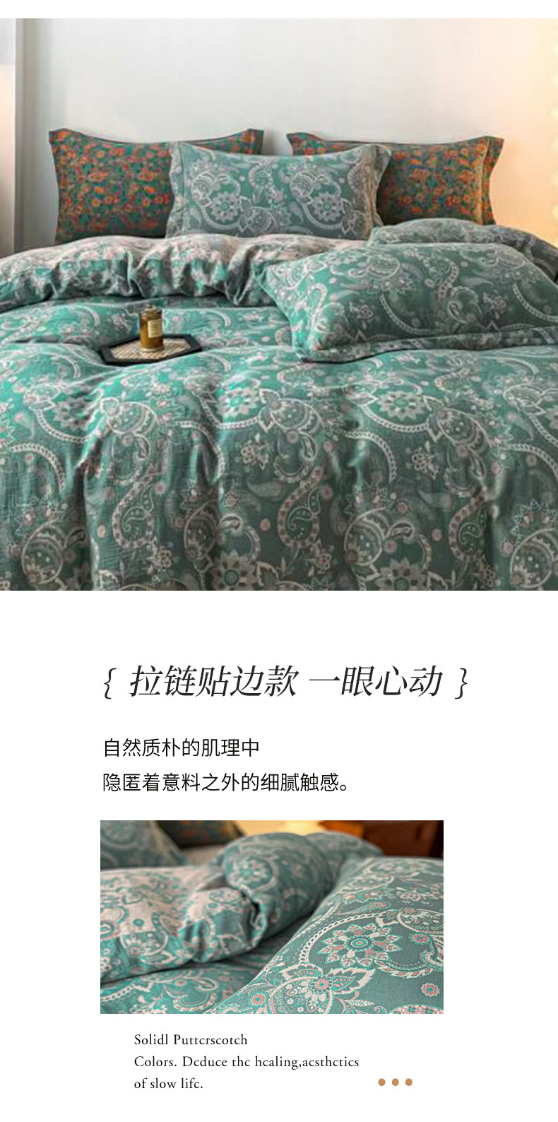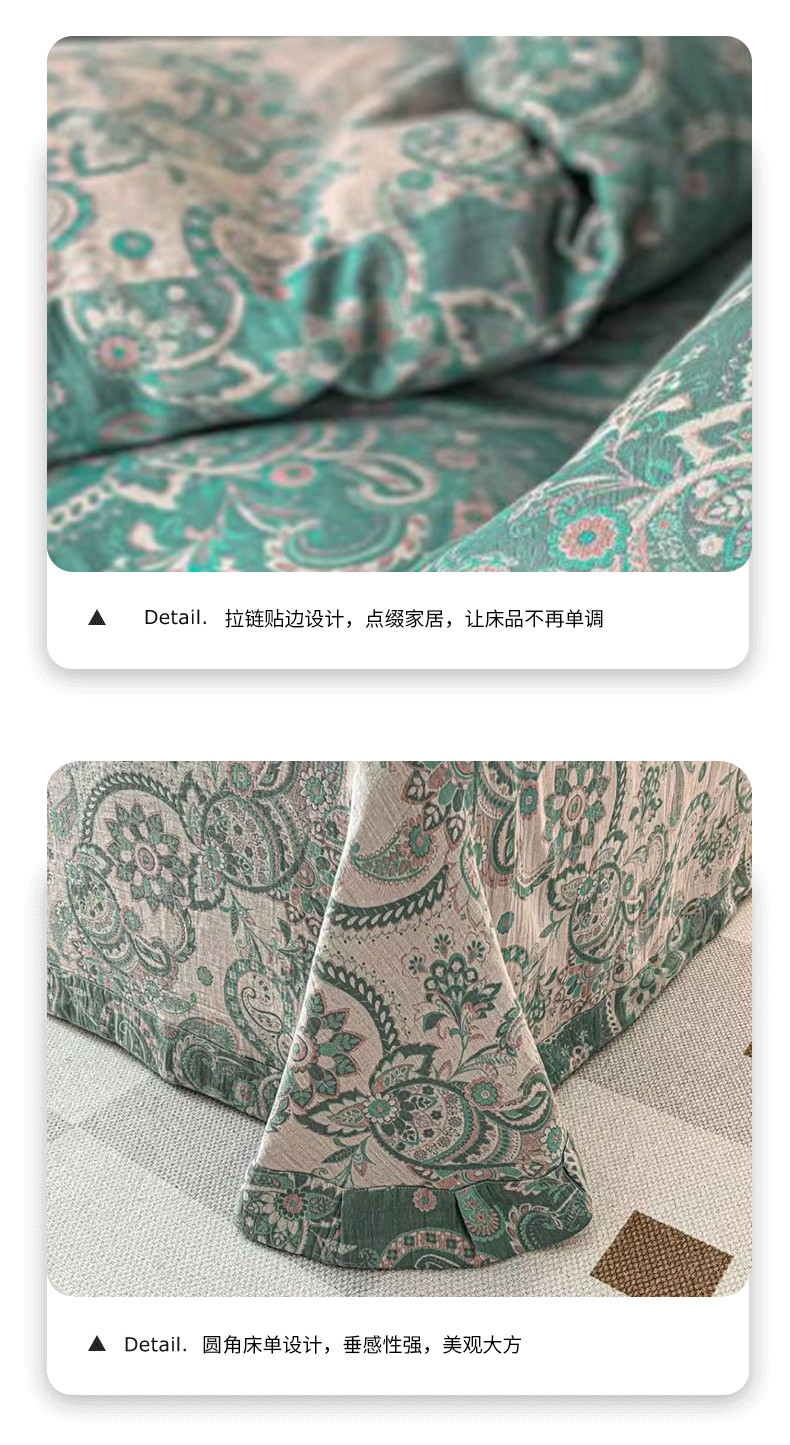 双层纱家居 2023新款拉链贴边款双层纱四件套 腰果花蓝