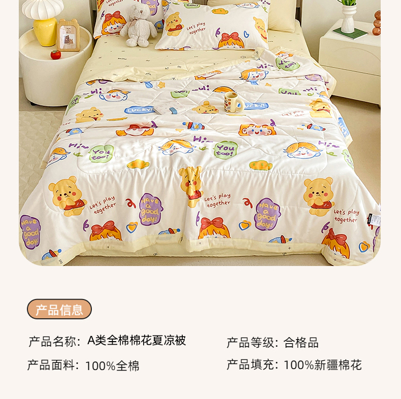 商品名称:鸣升家纺 A类印花全棉12868棉花夏凉被四件套夏被 可爱甜心