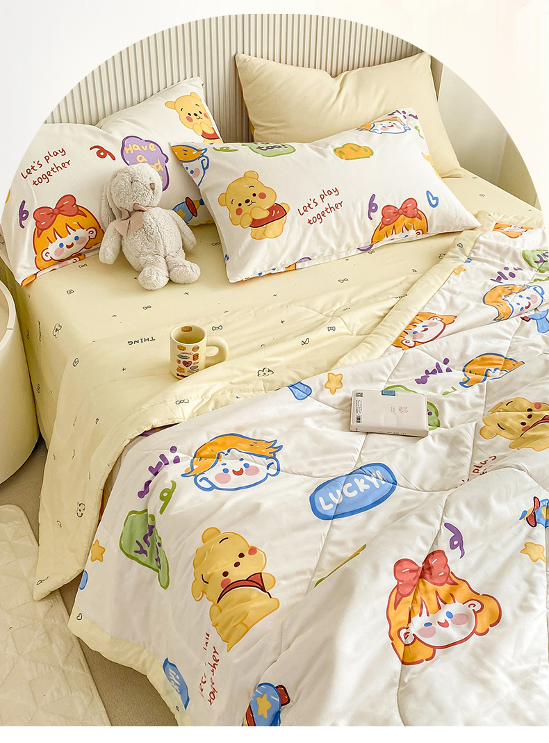 鸣升家纺 A类印花全棉12868棉花夏凉被四件套夏被 可爱甜心