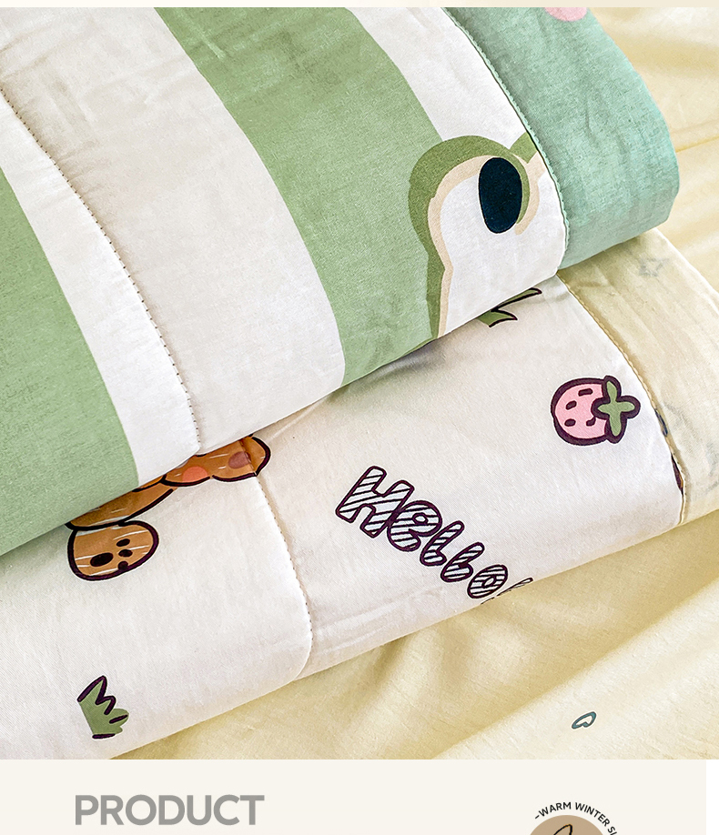 (总)2025新款全棉双层皱皱沙印花花边30%大豆夏凉被纯棉夏被被子被芯,赫本熊,花梦,花期,萌犬,墨颜,星月,玉兔-绿