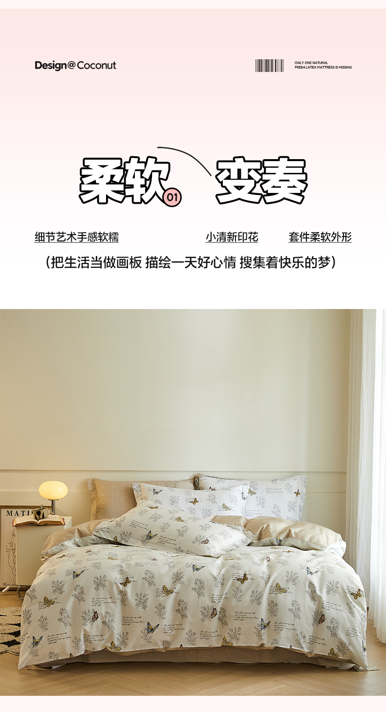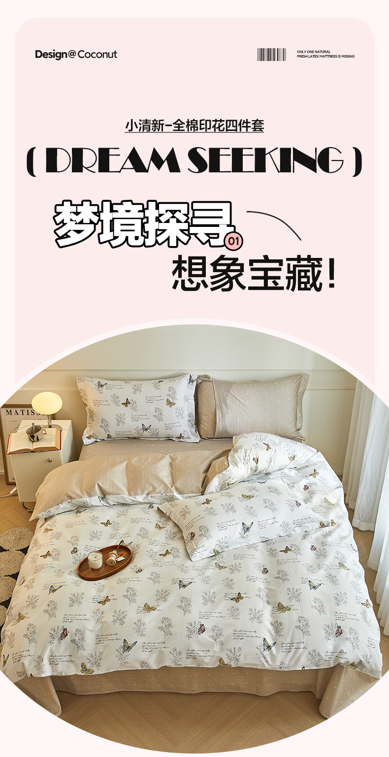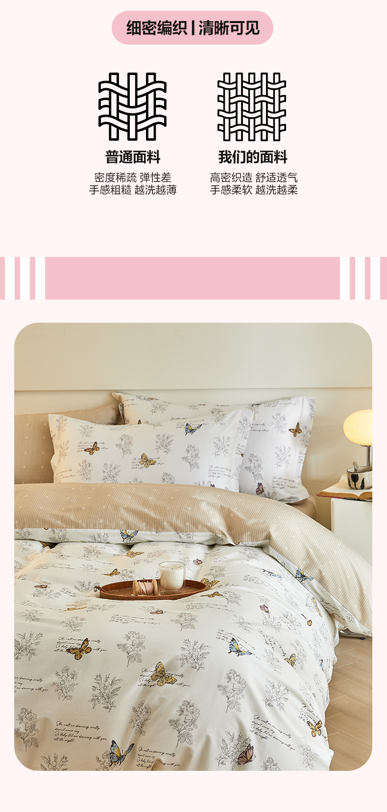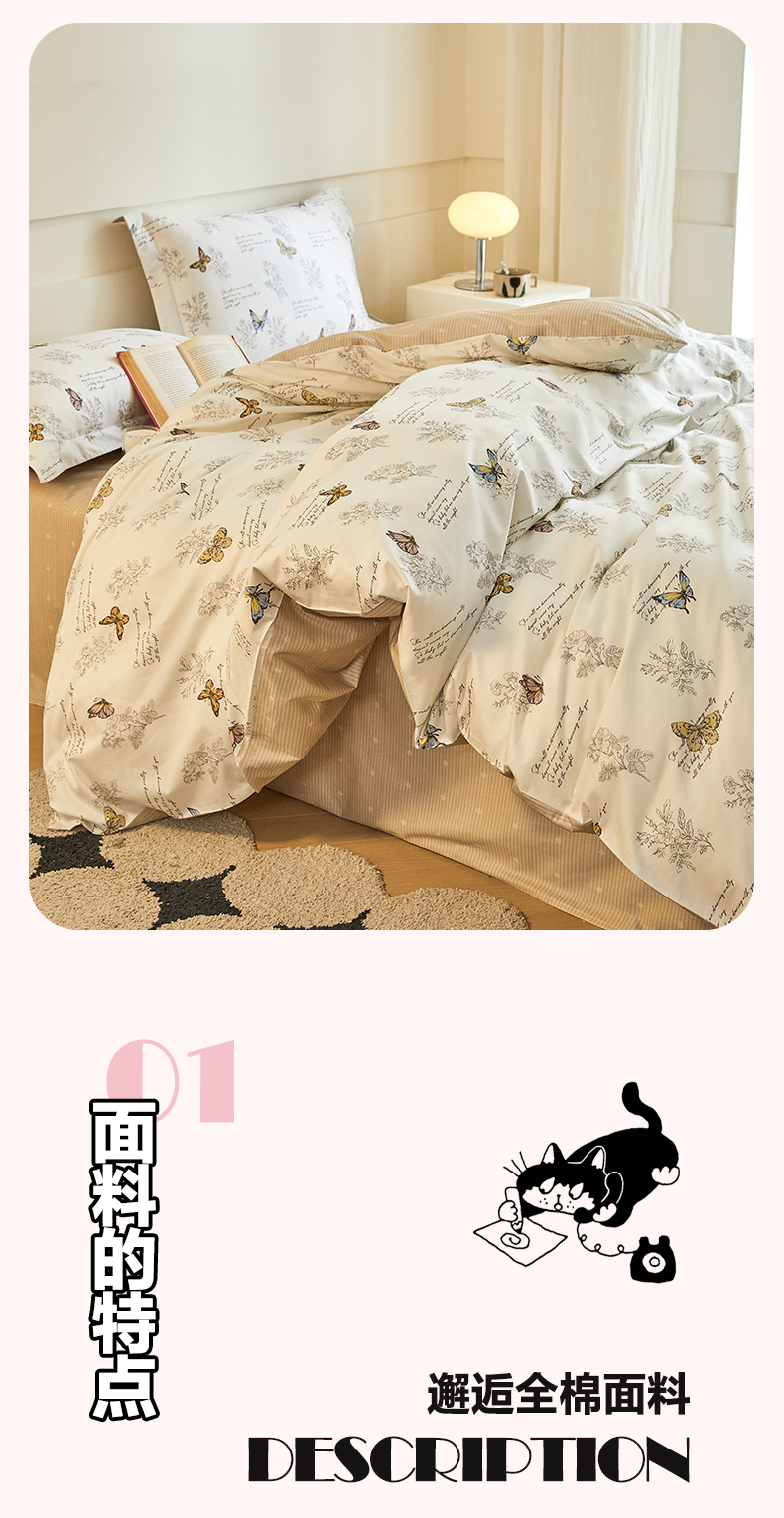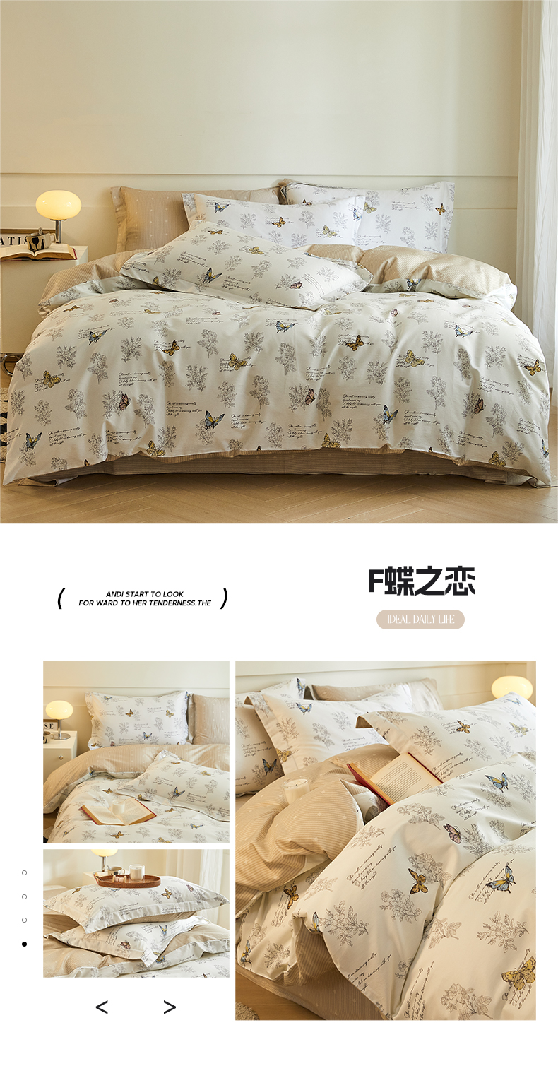 当前位置: 91家纺网 > 商品网购 > 床品套件 > 四件套 > 全棉普通四件套 > 2024新款小清新全棉印花四件套-68系列 F蝶之恋