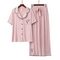 商品名称:洛兰沙家居馆【只代发】【只代发】 2025新款外贸欧美风8*5宽坑条莫代尔睡衣女春夏秋开衫翻领短袖长裤家居服 粉色