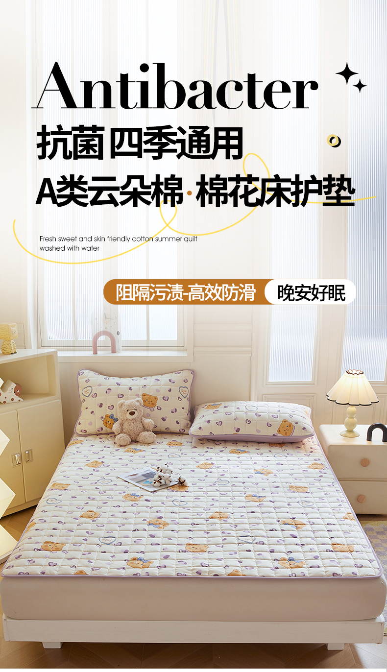 当前位置: 91家纺网 > 商品网购 > 床垫/床褥 > 普通床垫 > 魅图家纺 2025新款A类云朵棉抗菌棉花床护垫 爱心熊