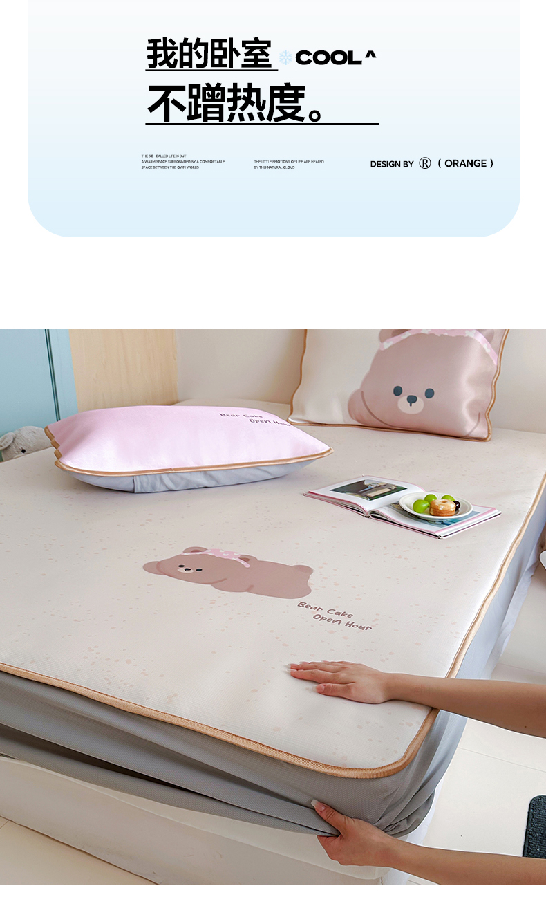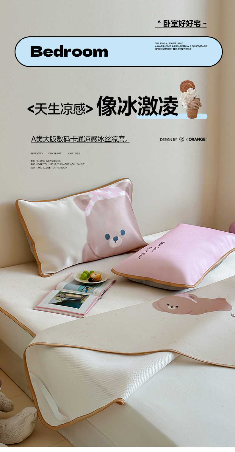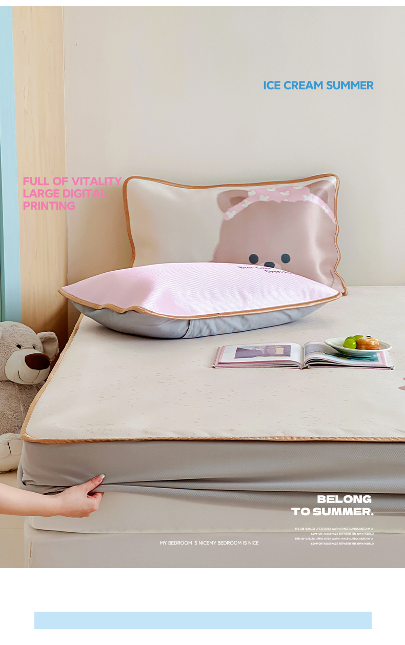 • 91家纺网 家纺一手货源 找家纺 如一2025A类ins大版数码卡通印花冰丝凉感席 粉粉熊-床笠-床笠
