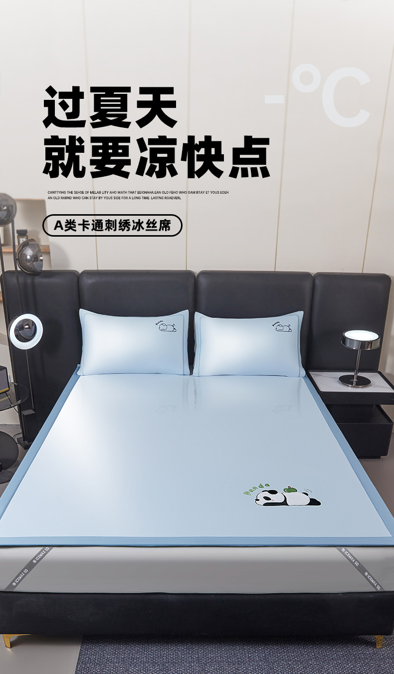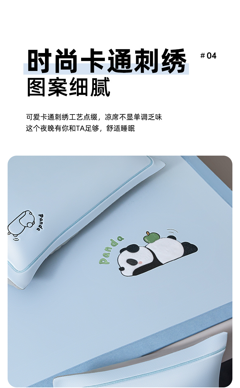 当前位置: 91家纺网 > 商品网购 > 床上用品 > 凉席 > 冰丝席 > 全季家居 2025新款5A抗菌碳光萌趣熊猫系列贴布绣冰丝席 床席-天蓝