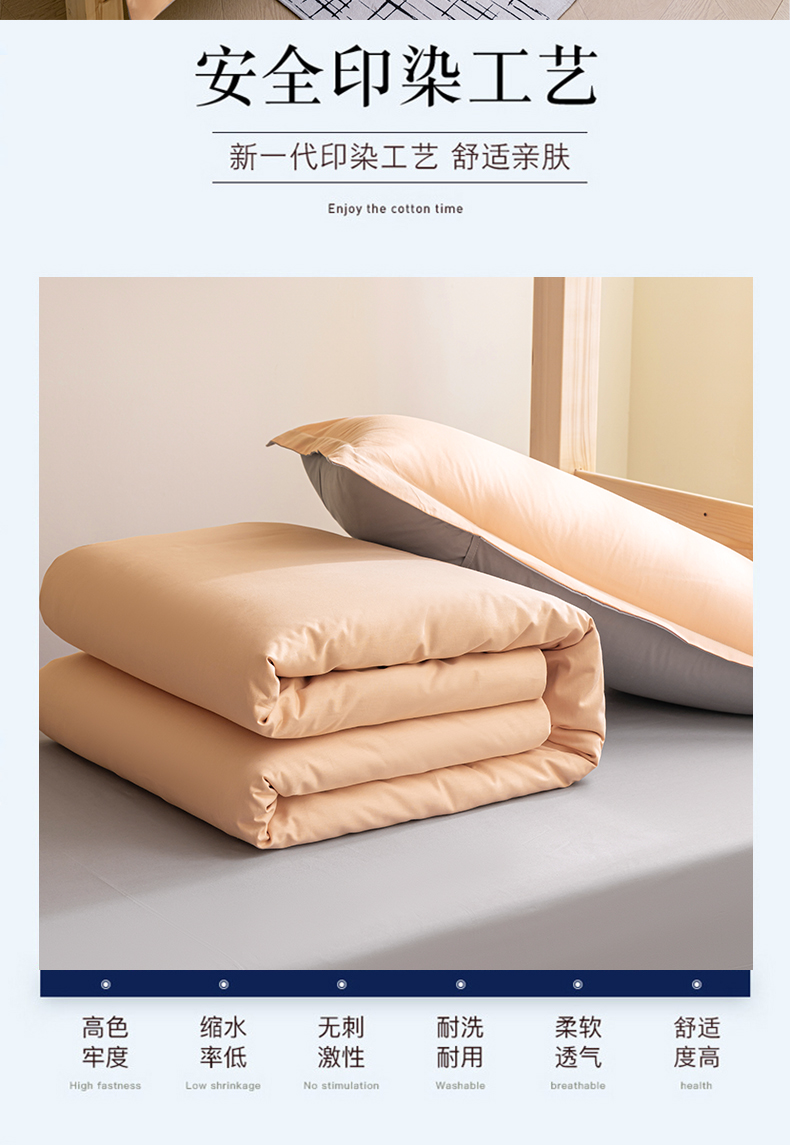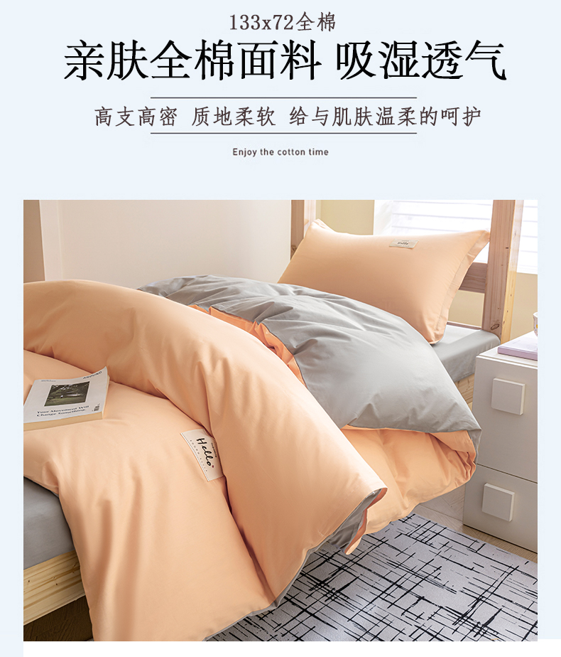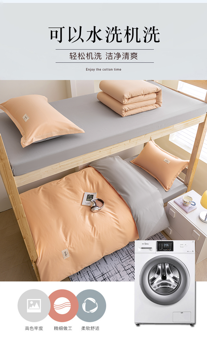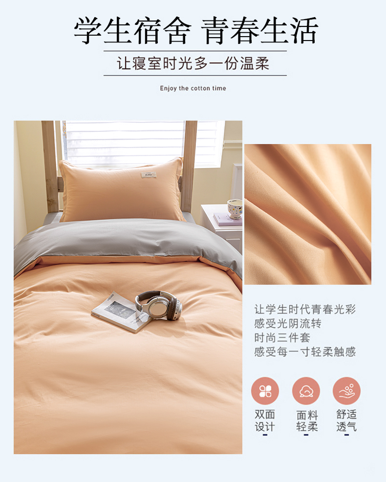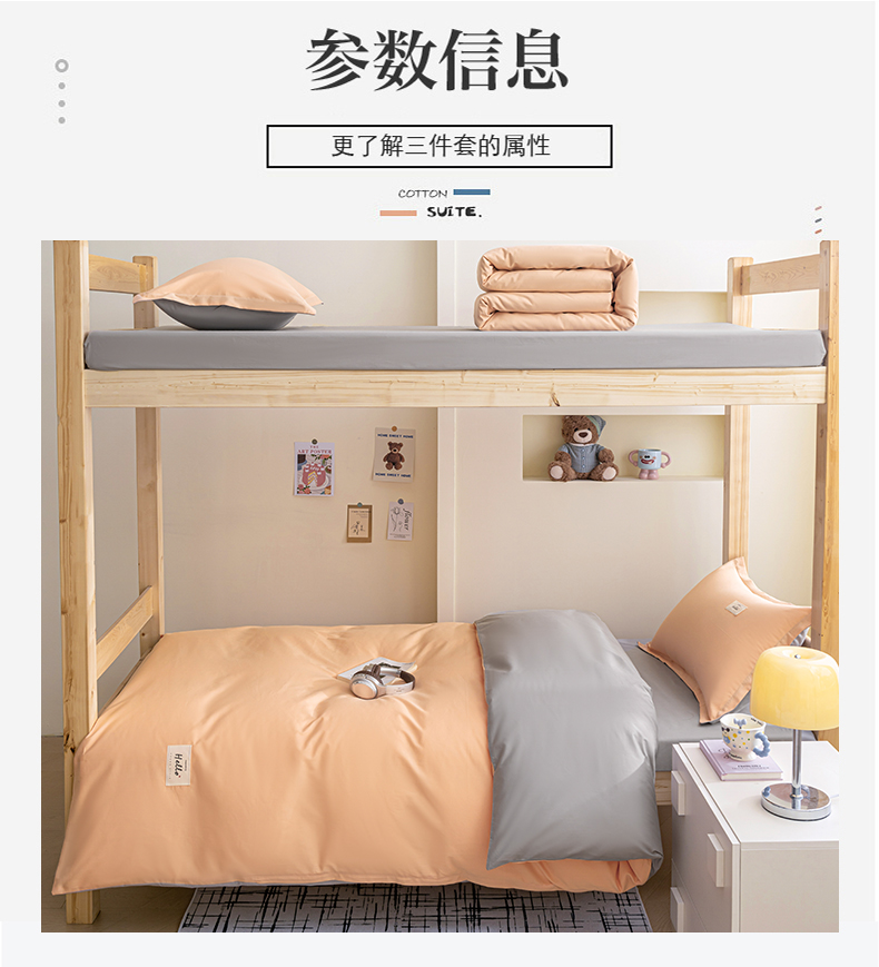 当前位置: 91家纺网 > 商品网购 > 床品套件 > 三件套 > 鑫宇家纺 2025新款13372全棉纯色双拼学生宿舍三件套六件套 奶玉+浅灰