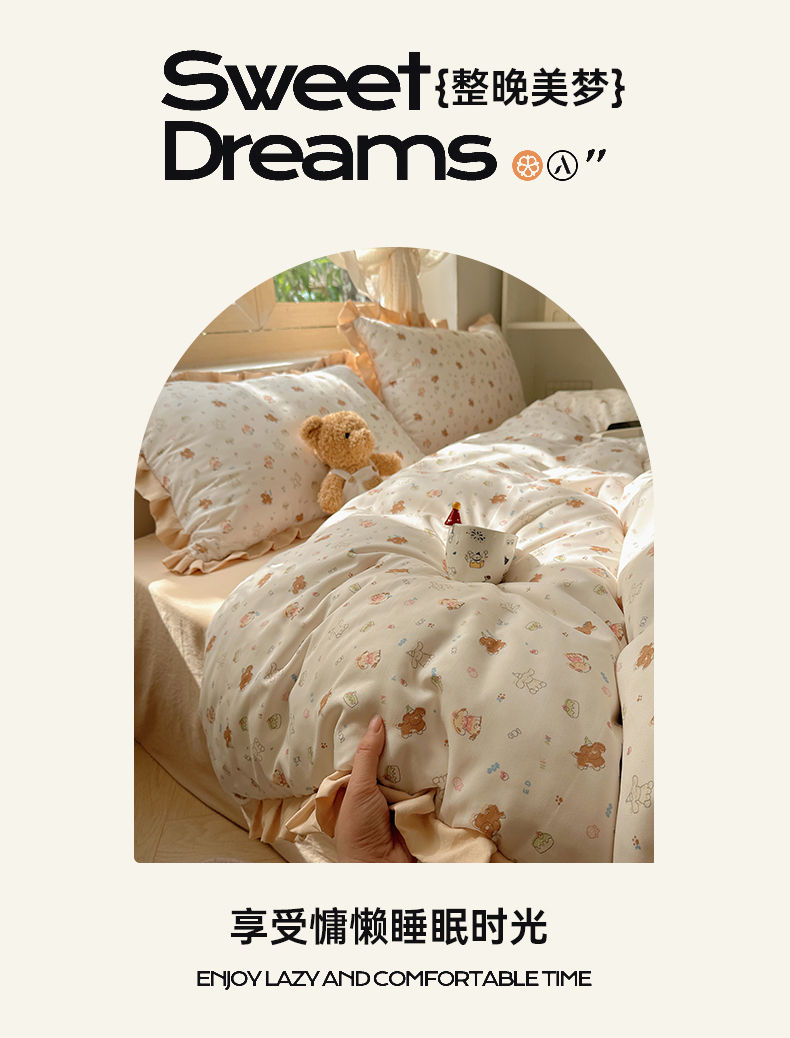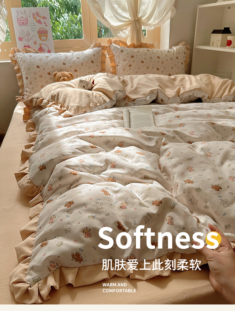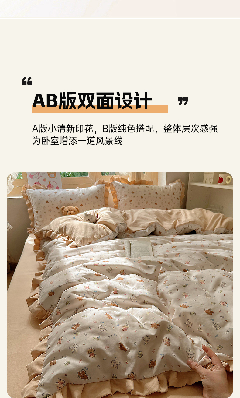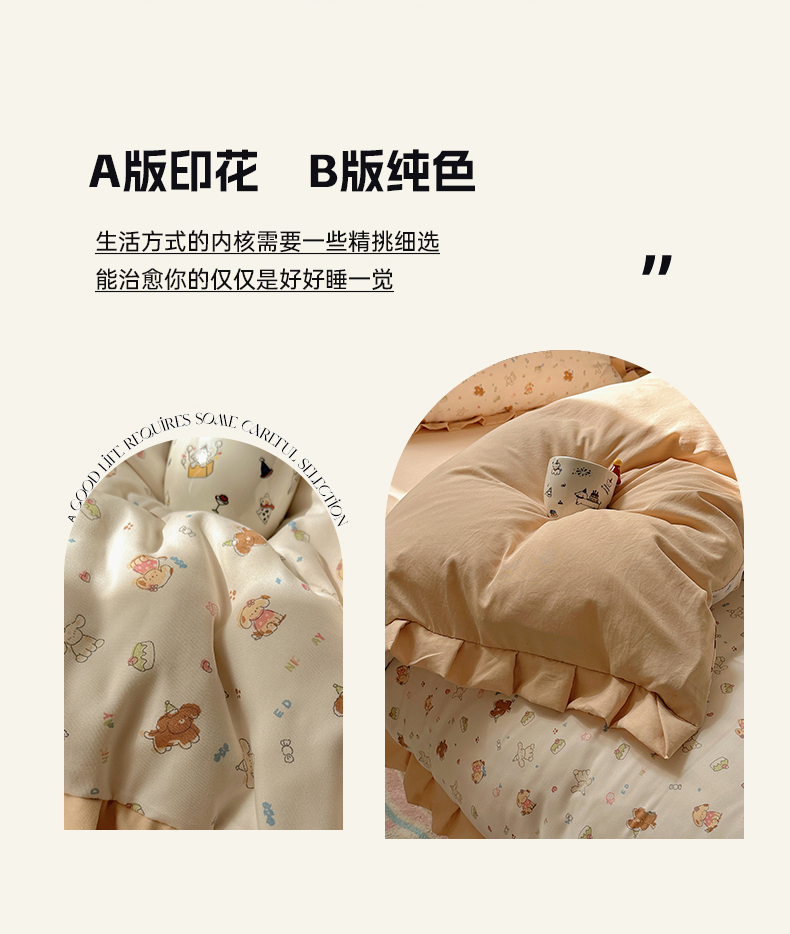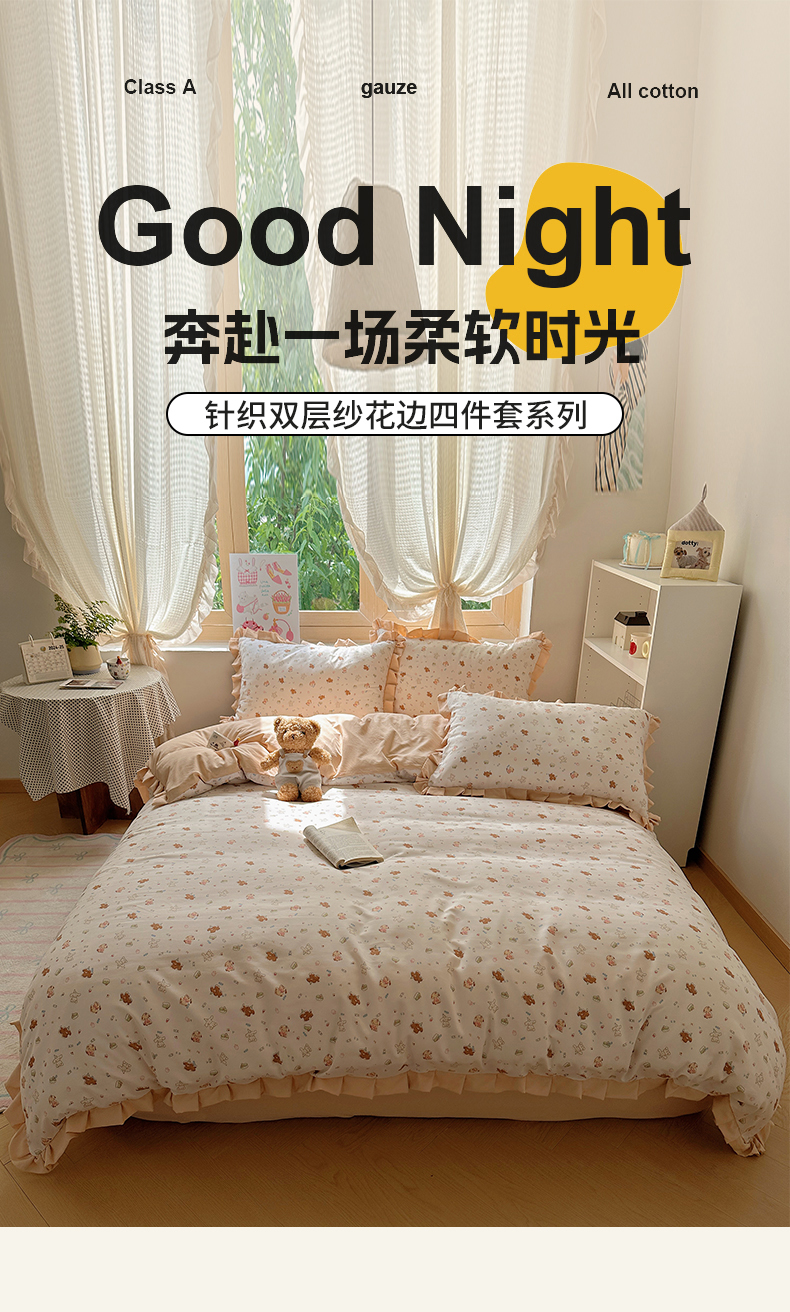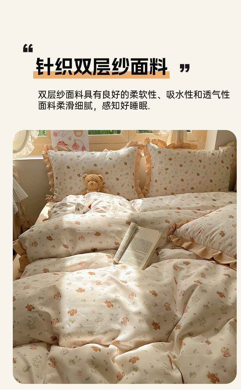 当前位置: 91家纺网 > 商品网购 > 床品套件 > 四件套 > 双层纱四件套 > 韩巢家纺 2025新款针织双层纱花边款被套直播热销款四件套学生宿舍床单三件套-(提供卖家秀) 奶油狗