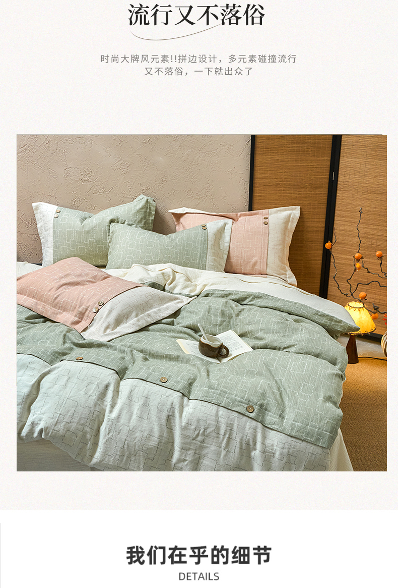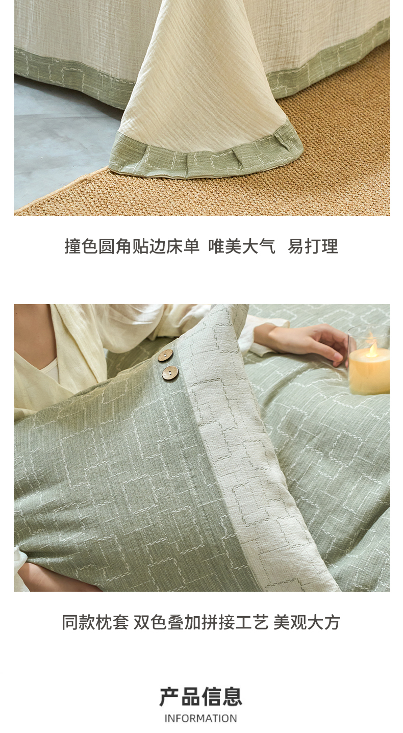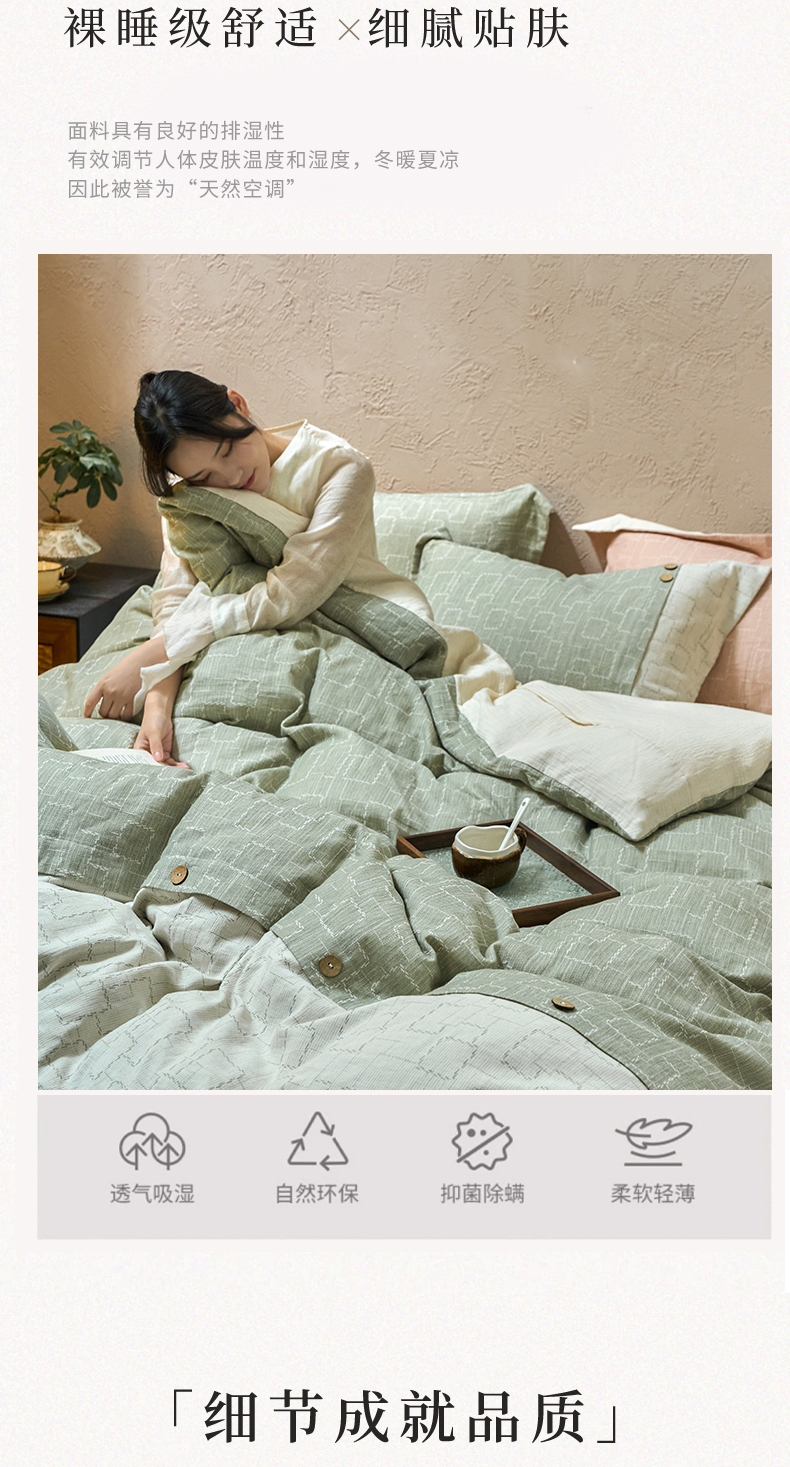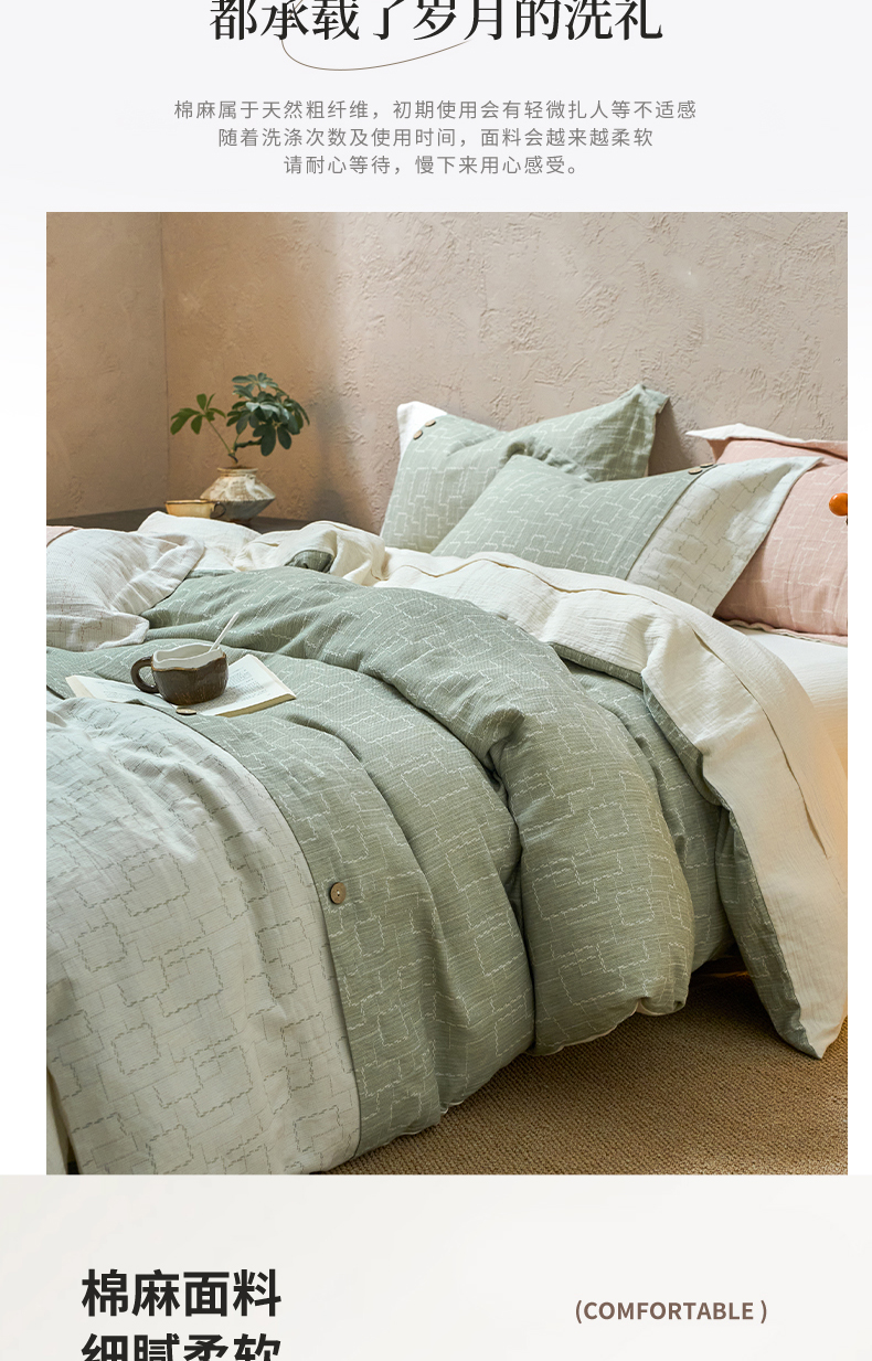 商品名称:春皖家纺 2025新款棉麻大提花文艺风四件套 时空-绿