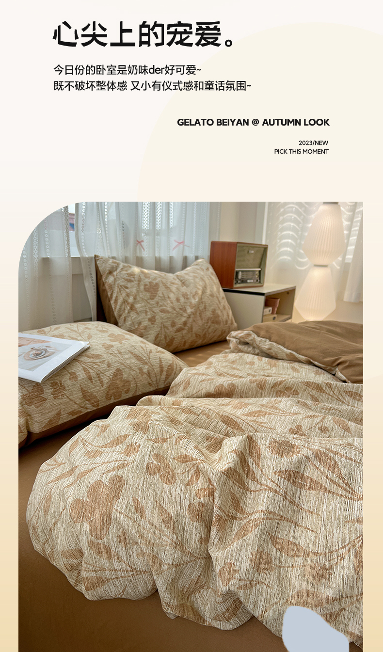(总)名品家纺 2026新款软糯小露麻棉麻棉纱四件套 提供买家秀,蝴蝶结小熊,灰羽星点,玫瑰蔓语,暖棕花笺,奇迹小马,浅茶花语,青枝漫野,小雏菊,心心点点,紫雾栖花,组合图仅供参考不可下单