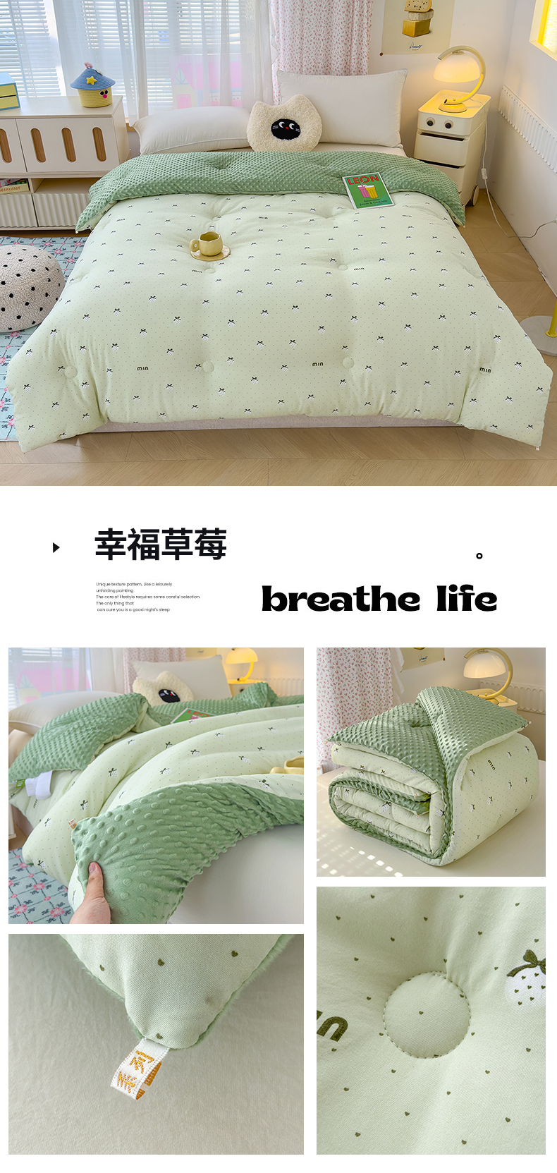 爱宝被业 2025新款A类水洗棉双层纱豆豆绒被芯 幸福草莓