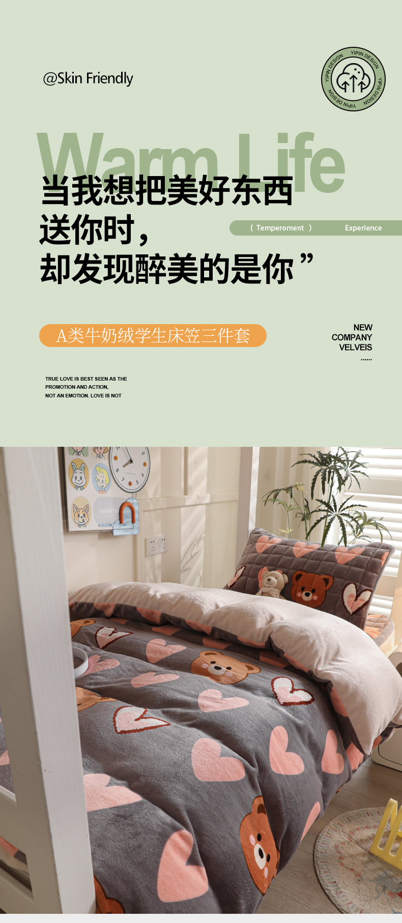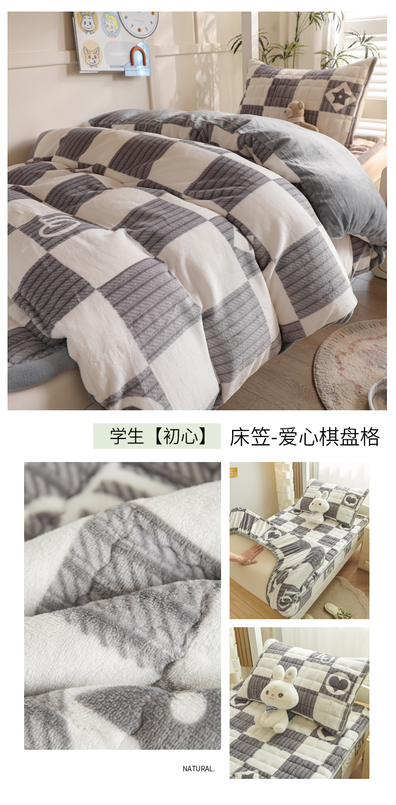 • 91家纺网 家纺一手货源 找家纺 爱思凯家纺 2025新款初心-牛奶绒学生床笠小号三件套 【初心】床笠-多米熊