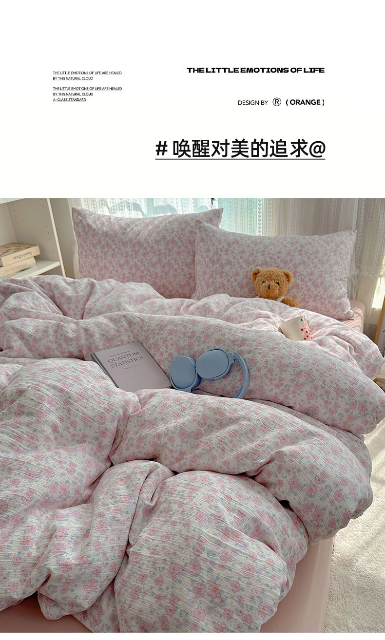 当前位置: 91家纺网 > 商品网购 > 床品套件 > 四件套 > 其它四件套 > 金梦拉家纺 2025新款加厚皱皱纱婴儿纱四件套 奶油草莓