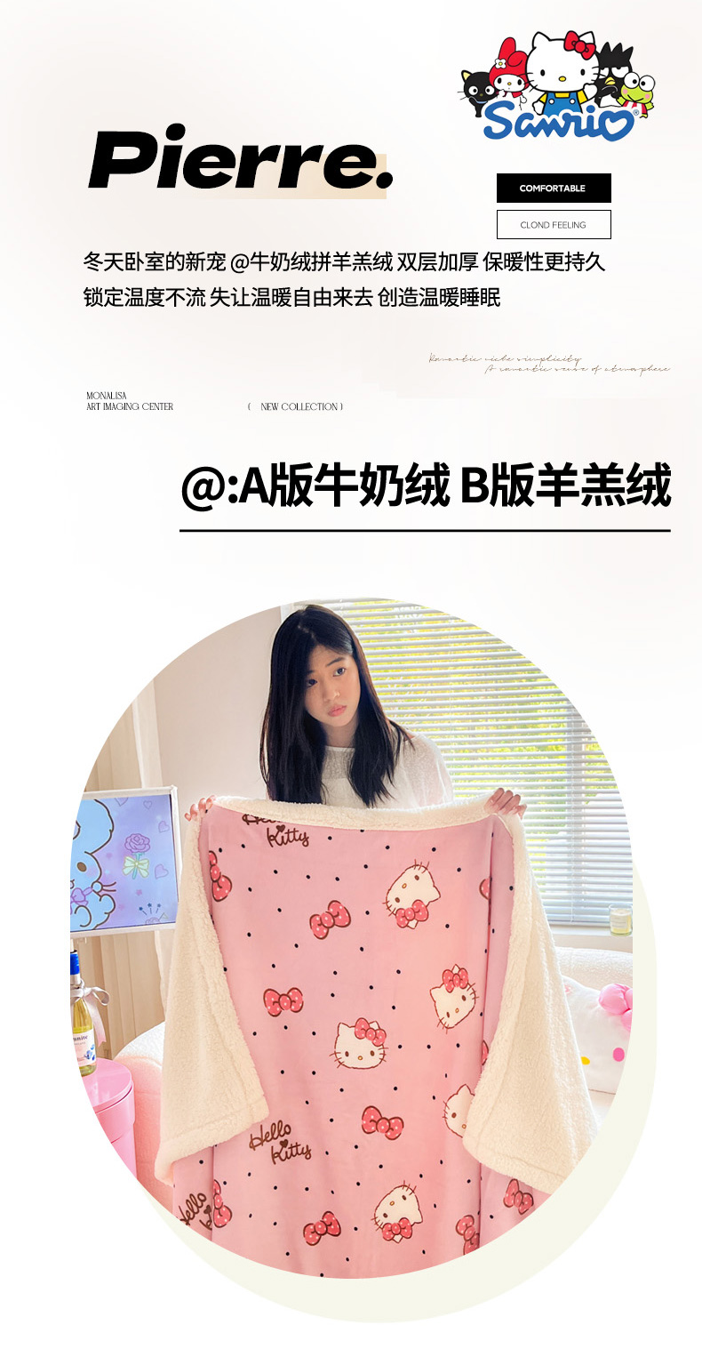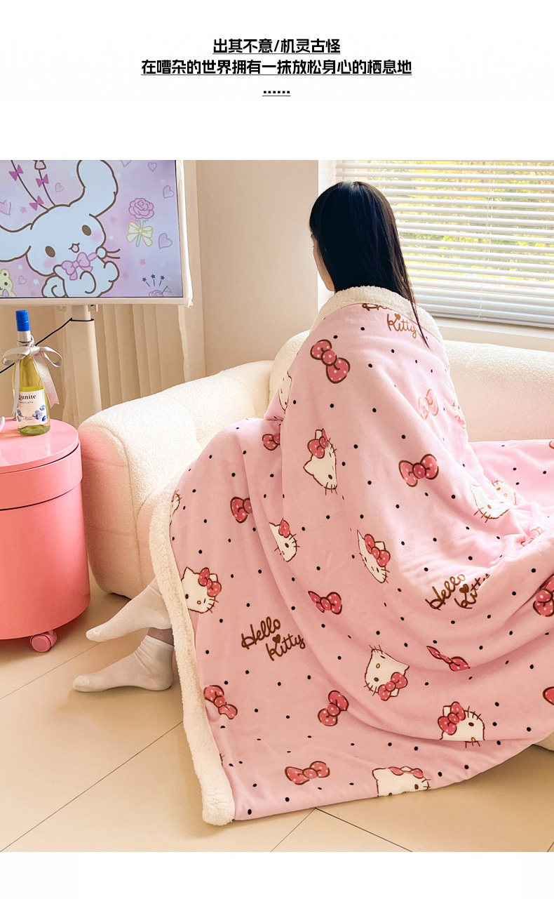 当前位置: 91家纺网 > 商品网购 > 毛毯休闲毯绒毯 > 毛毯 > 暮思家居 2025新款三丽鸥正版授权少女可爱卡通加厚牛奶绒羊羔绒毛毯多功能四季毛毯 羊羔绒-可爱KT