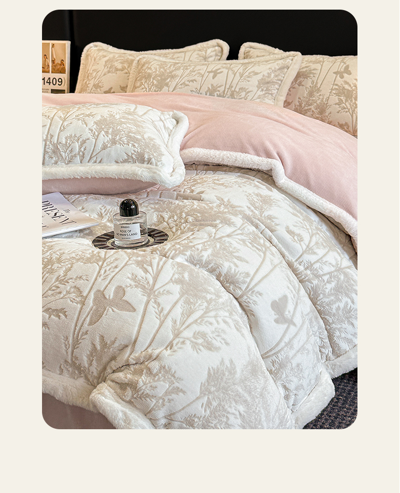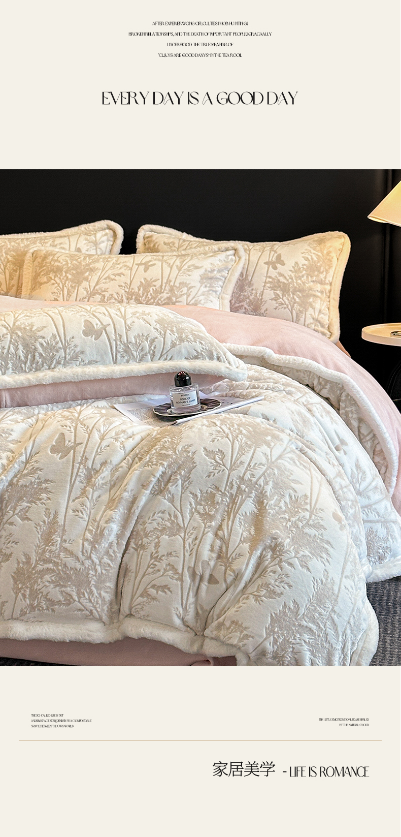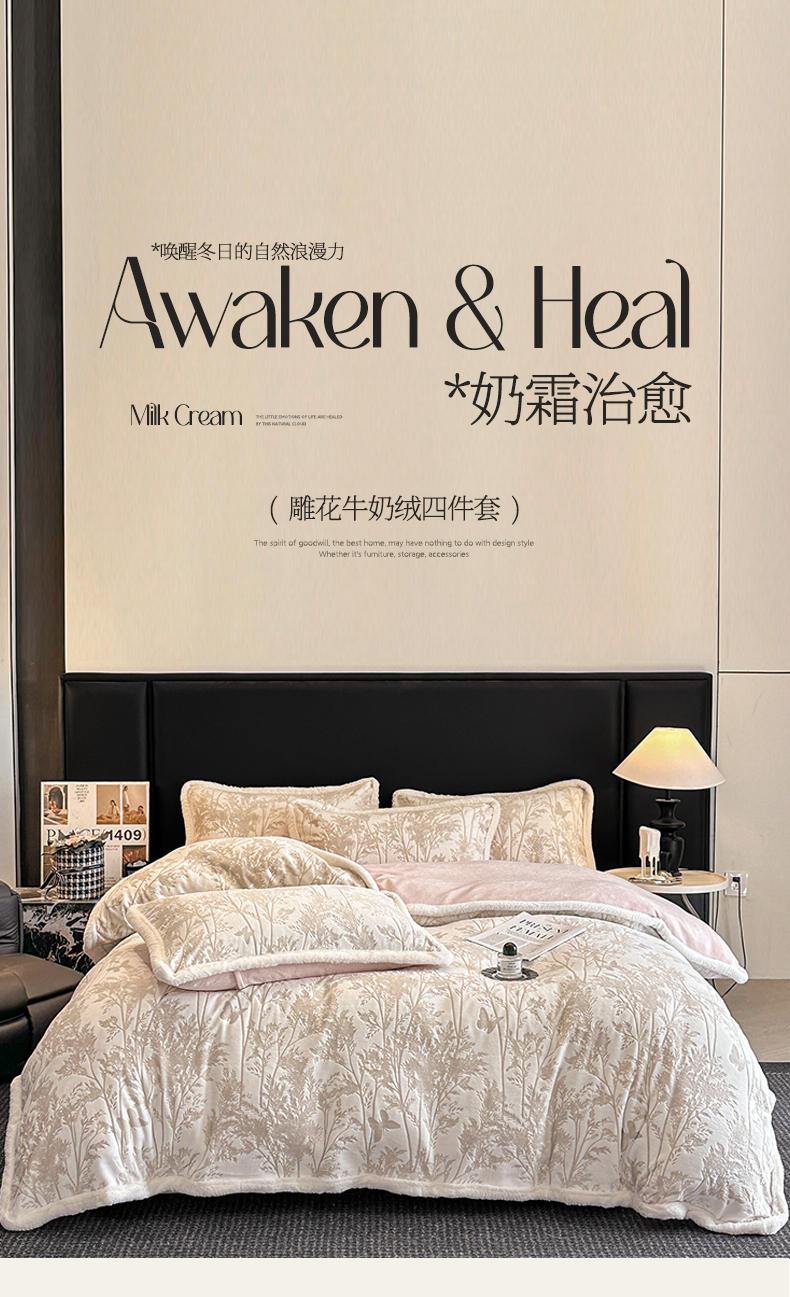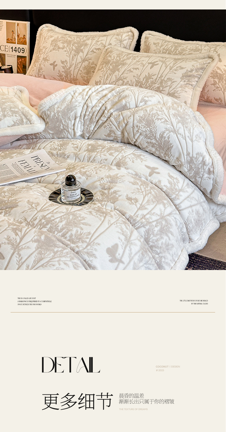 涵宸家纺 2025新款雕花牛奶绒四件套 雨蝶-灰