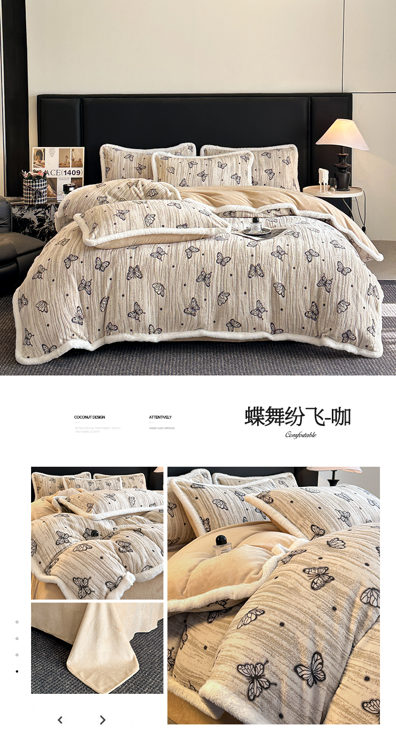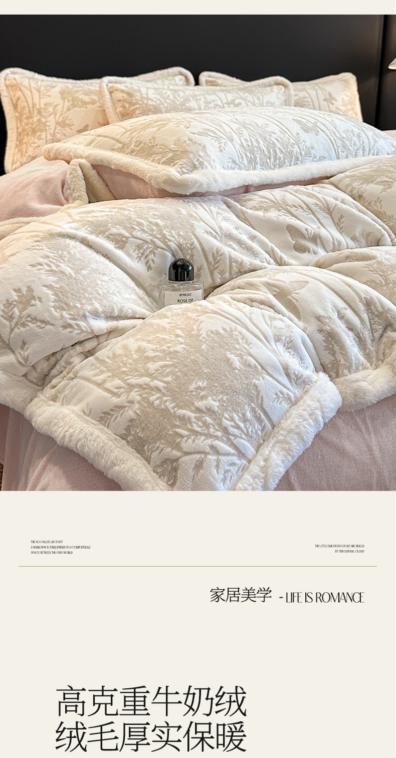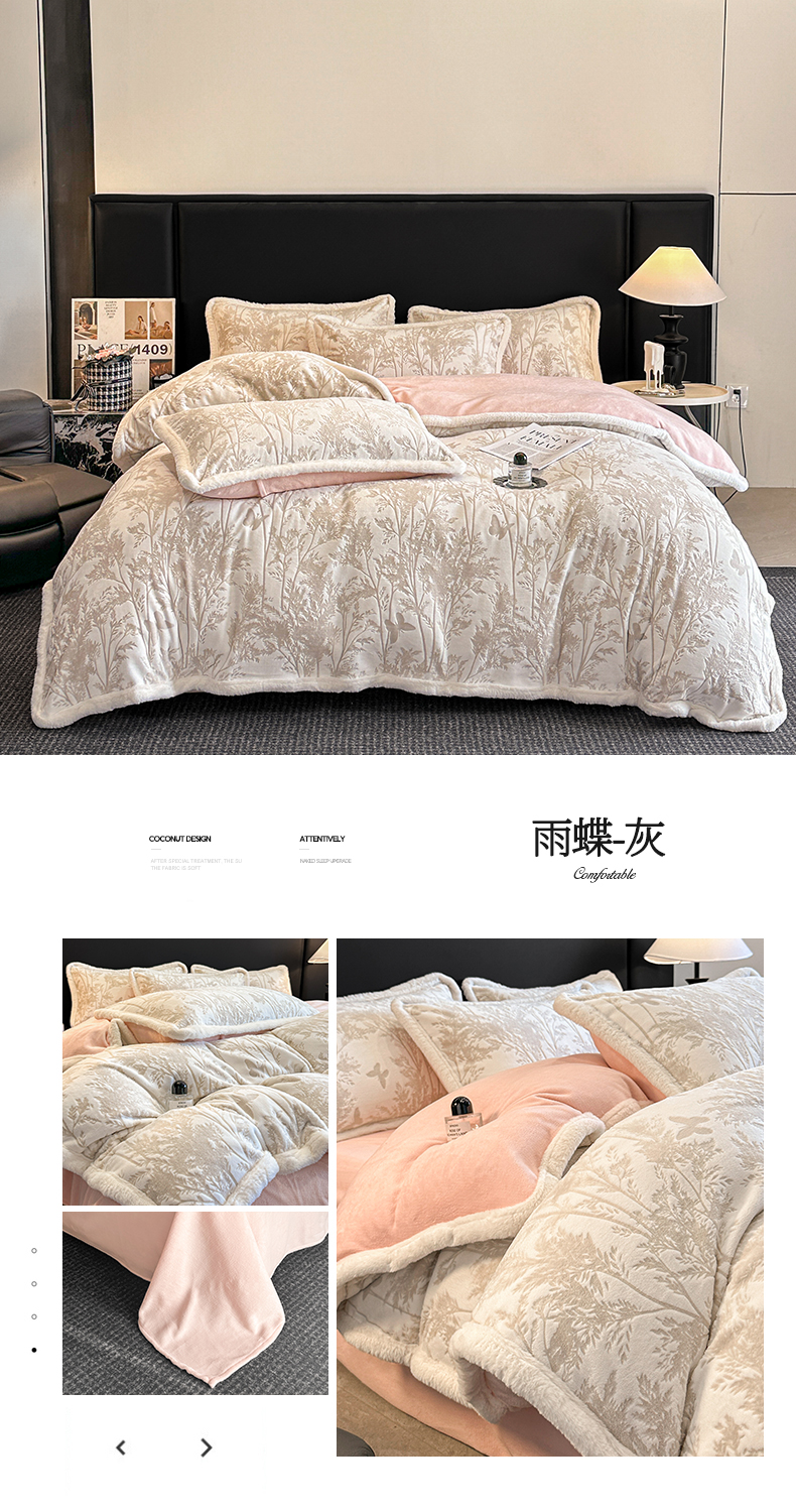 商品名称:涵宸家纺 2025新款雕花牛奶绒四件套 雨蝶-灰
