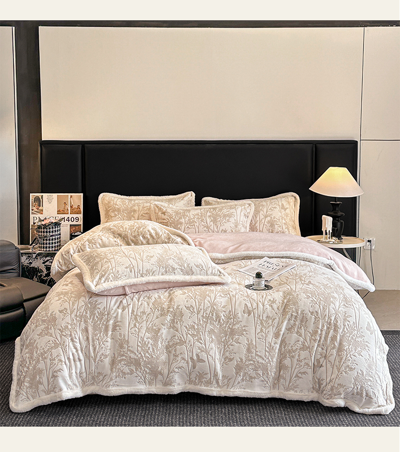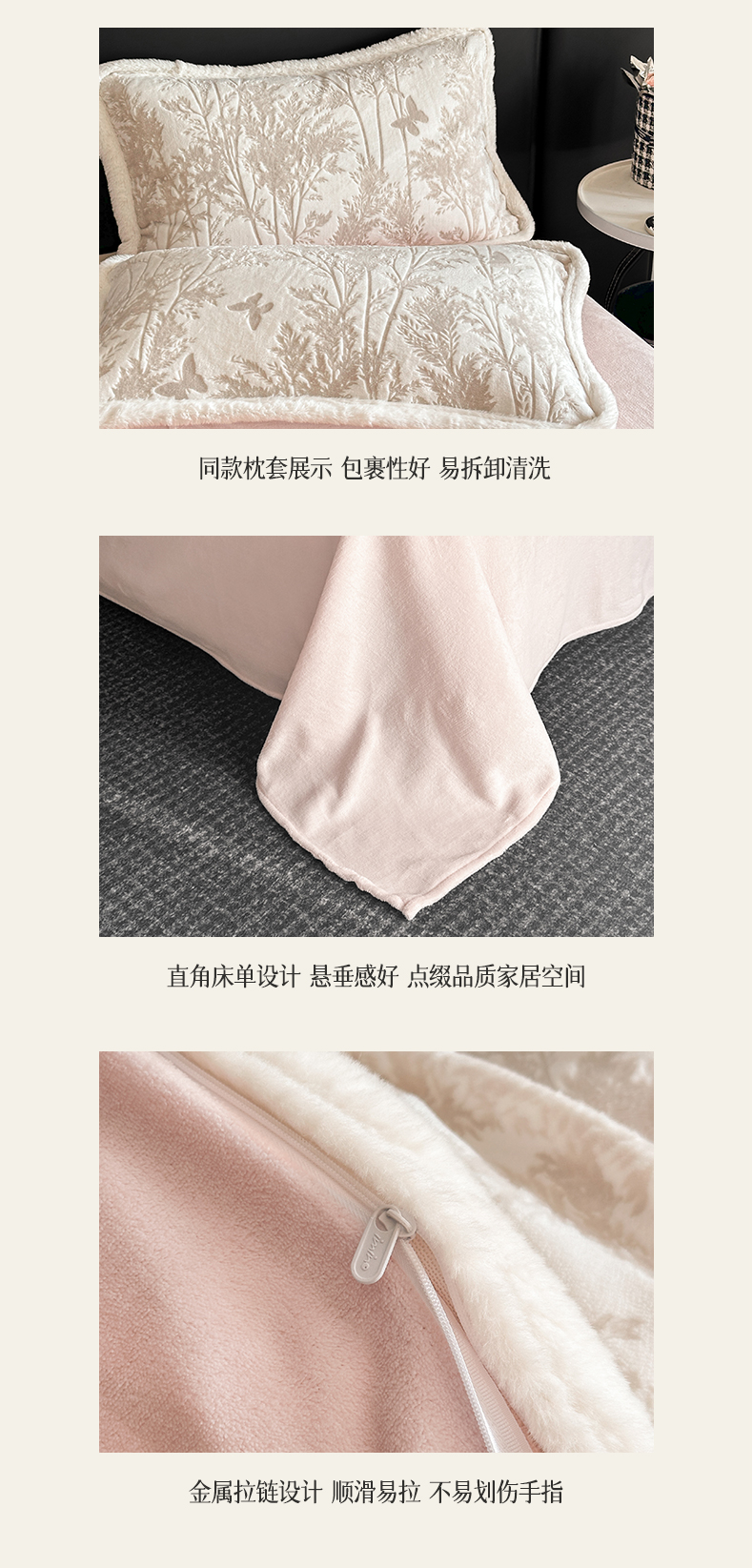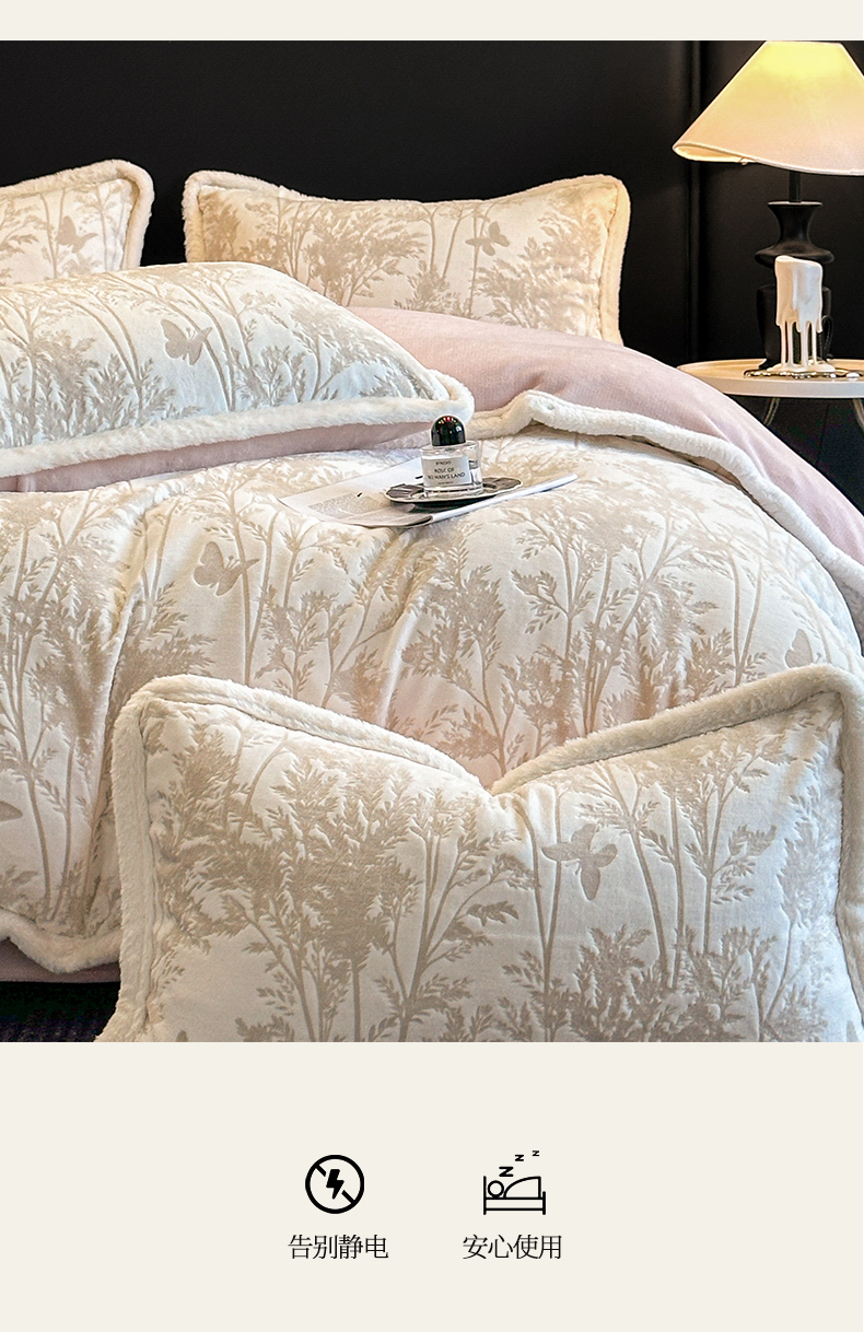 商品名称:涵宸家纺 2025新款雕花牛奶绒四件套 雨蝶-灰