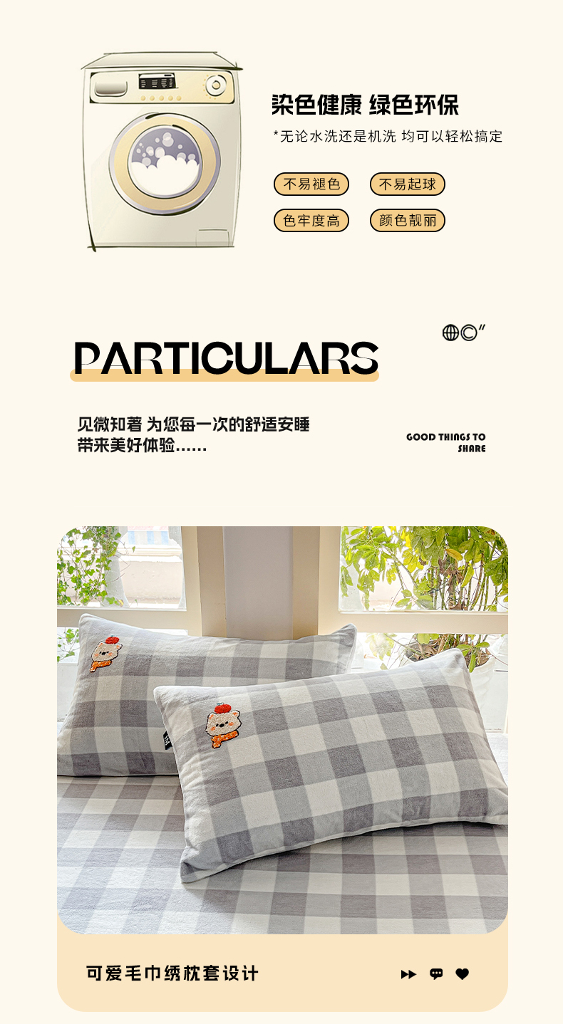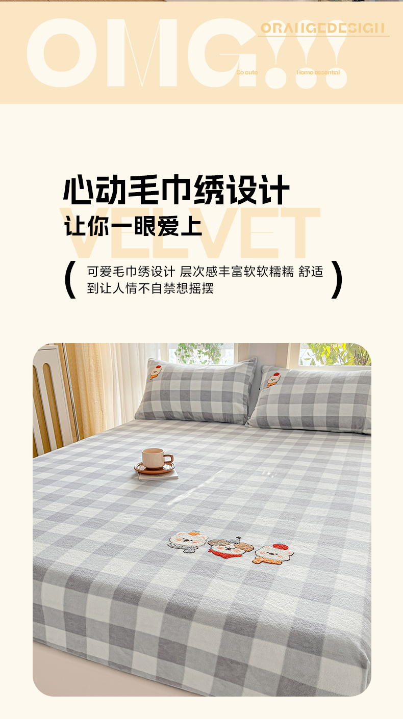 当前位置: 91家纺网 > 商品网购 > 床品套件 > 四件套 > 牛奶绒四件套 > 乐美家纺 2025新款A类高克重牛奶绒毛巾绣床笠三件套 美好生活