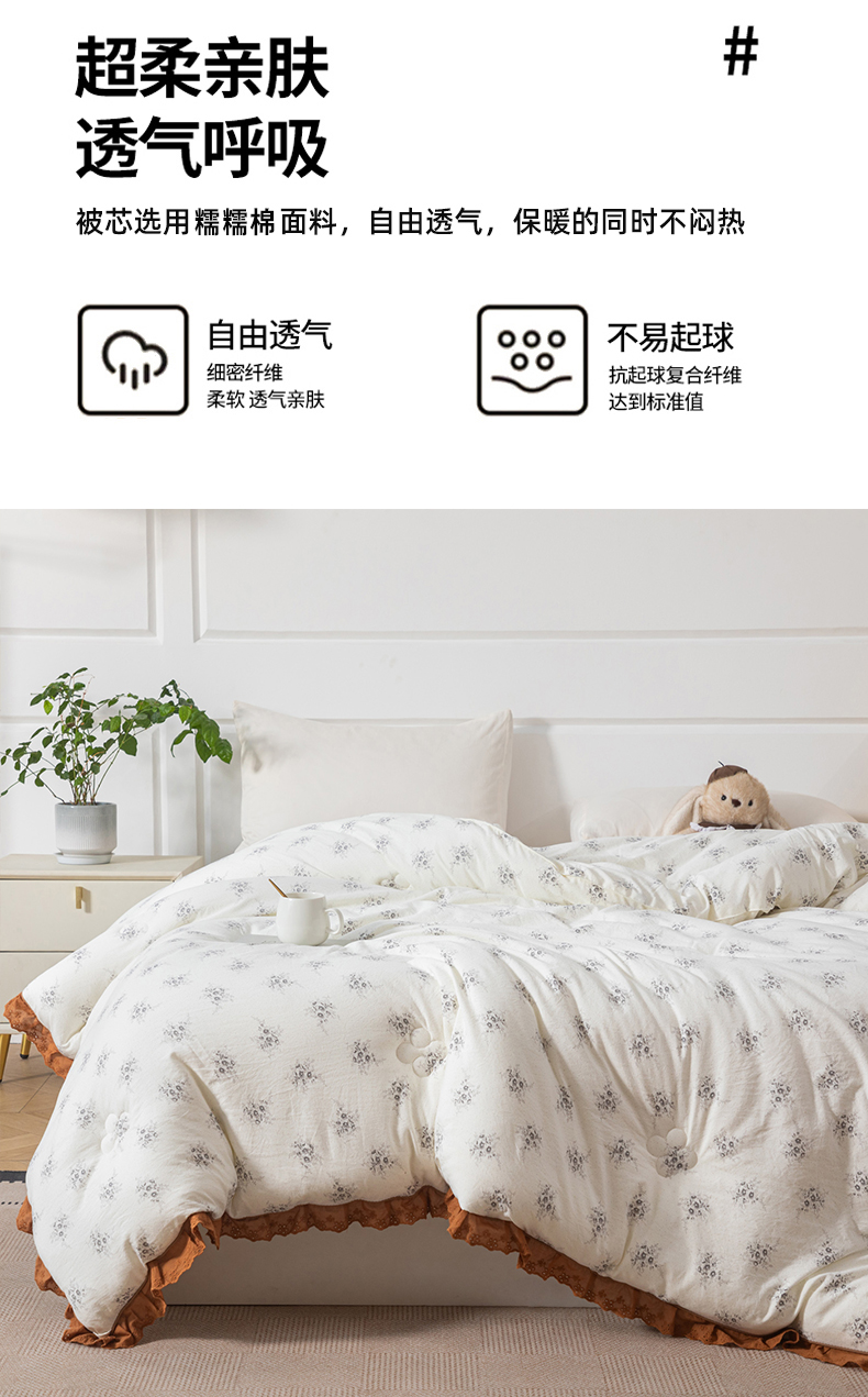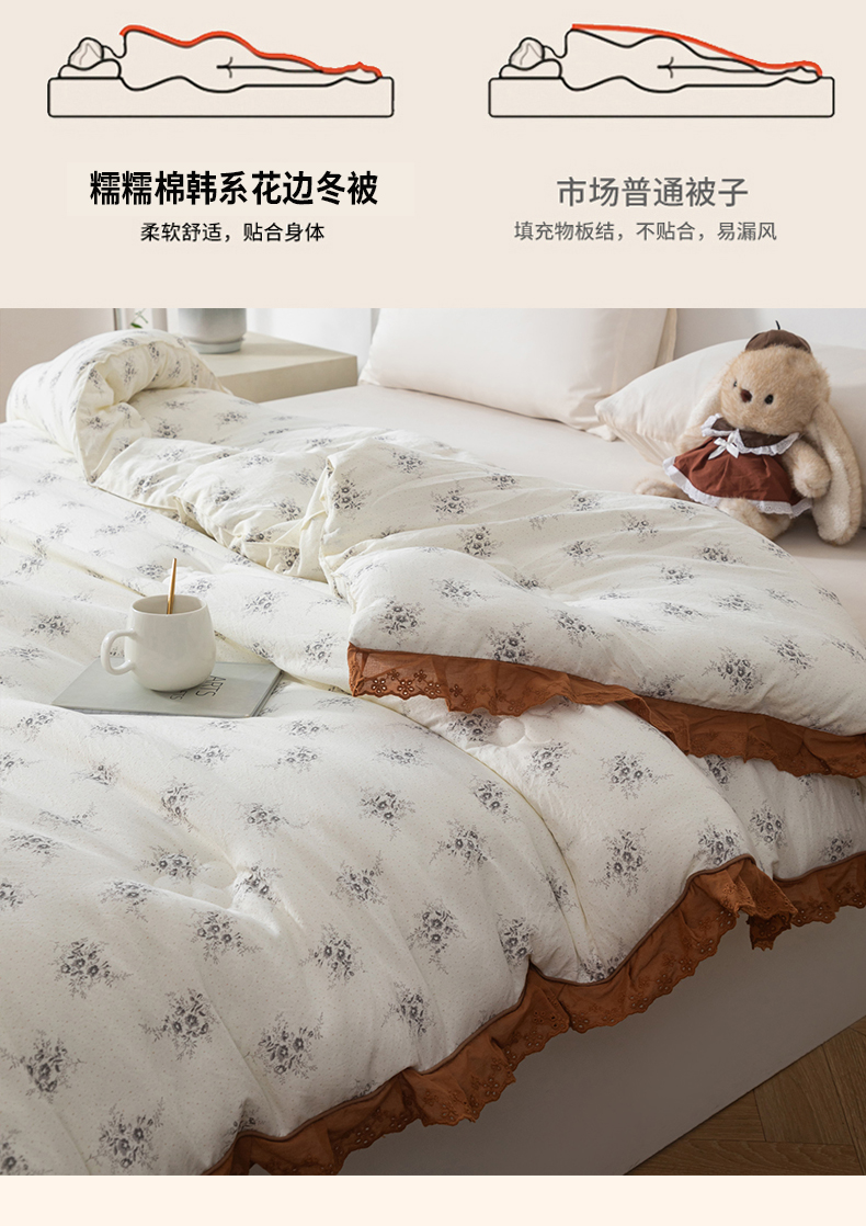 商品名称:大世界被王 2025新款糯糯棉韩系花边冬被被子被芯 秋意