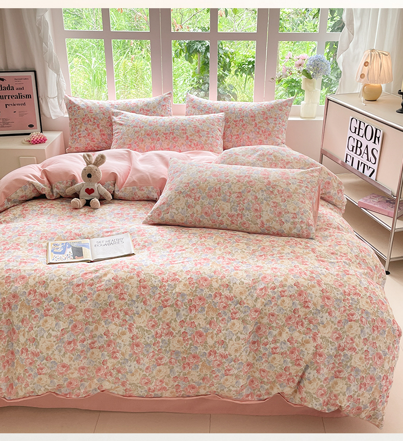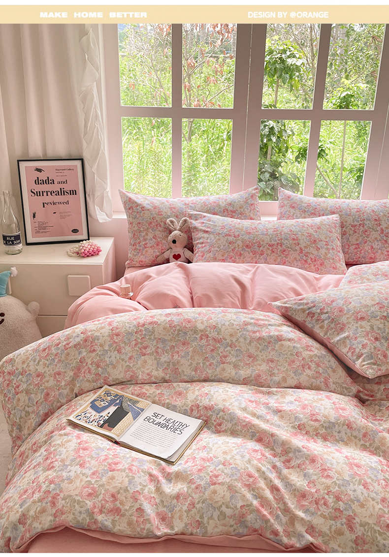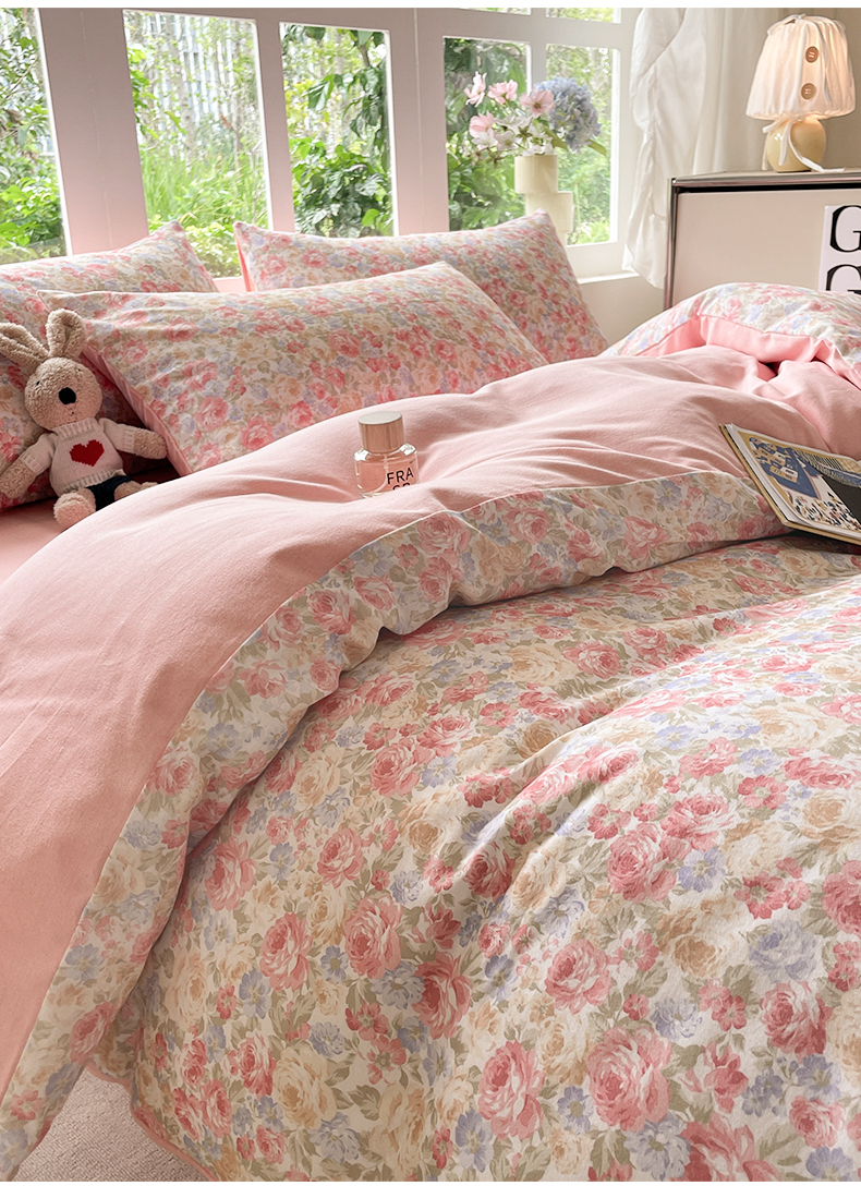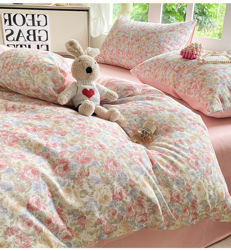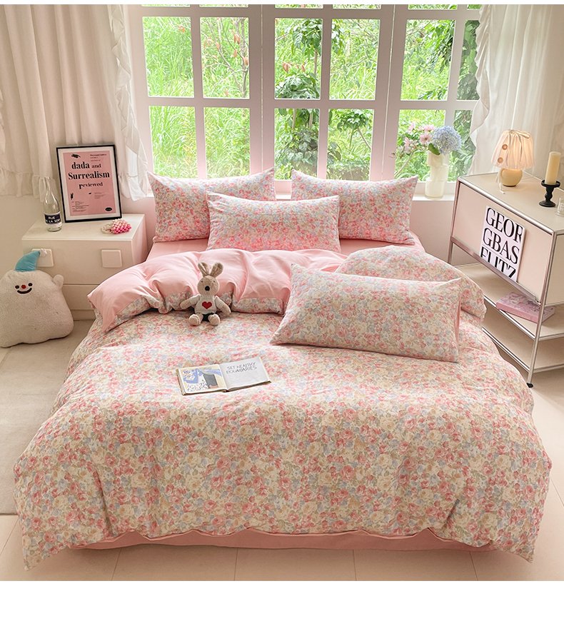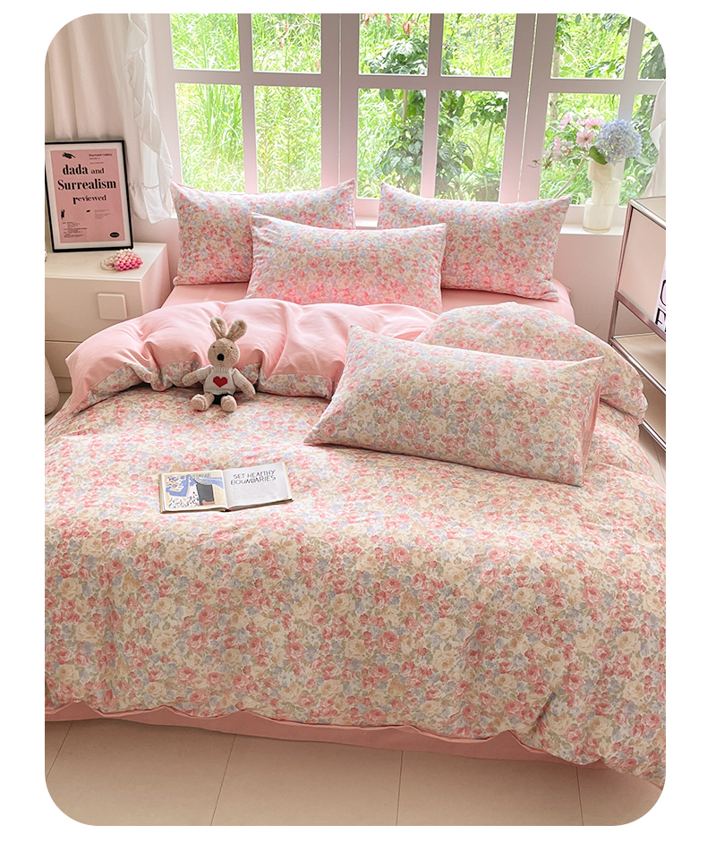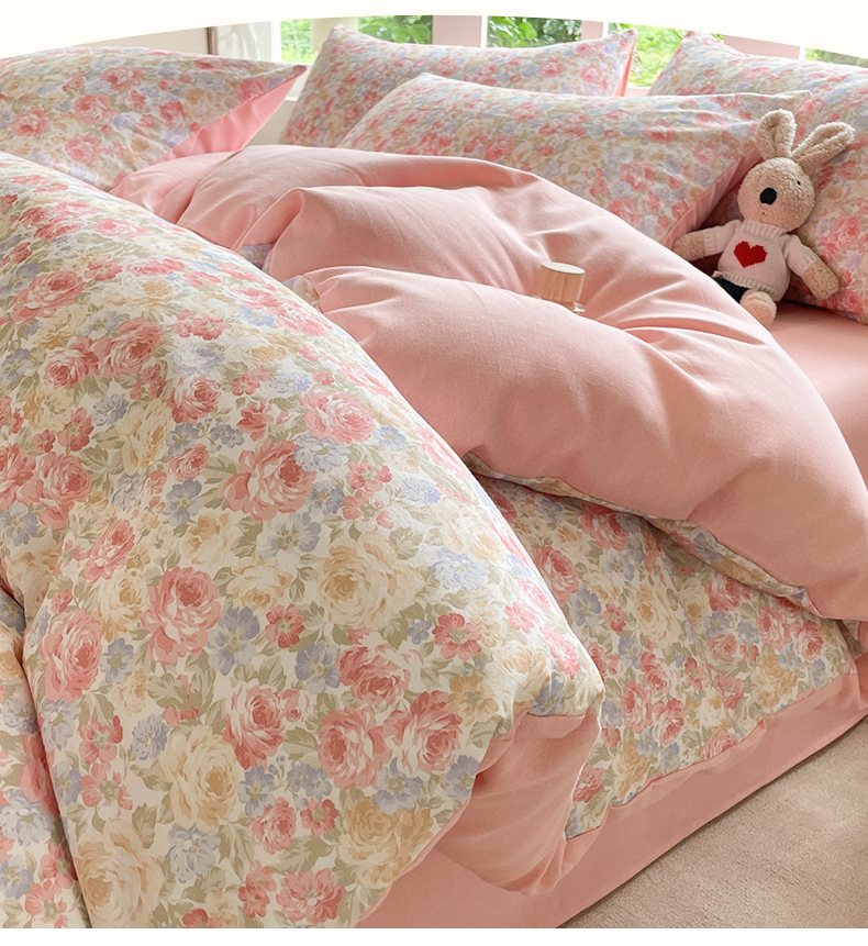 本制 2025秋冬新款全棉混纺磨毛印花四件套 花千束-杨妃粉