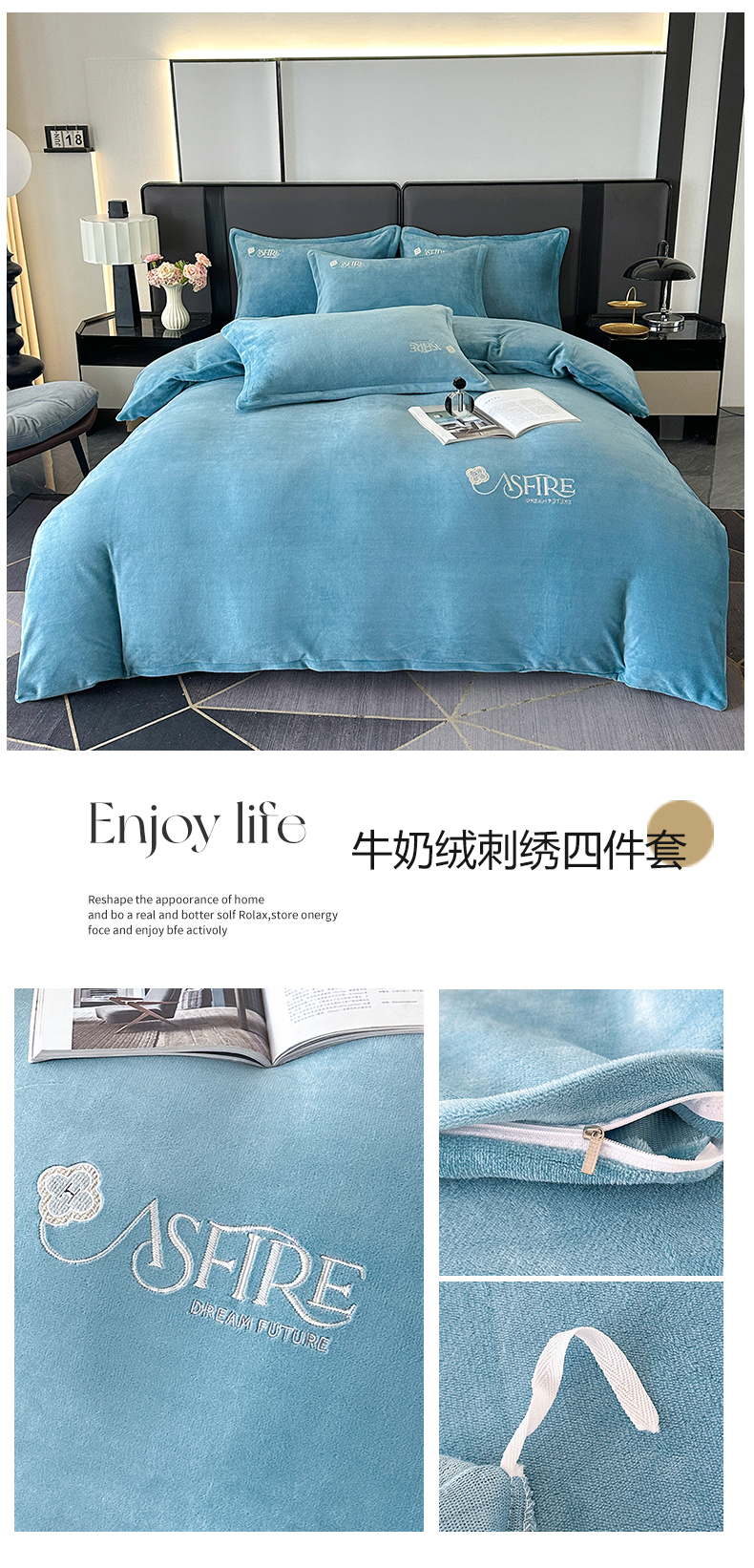 商品名称:富缦庭 2025新款牛奶绒绣花四件套 遇见-深蓝色