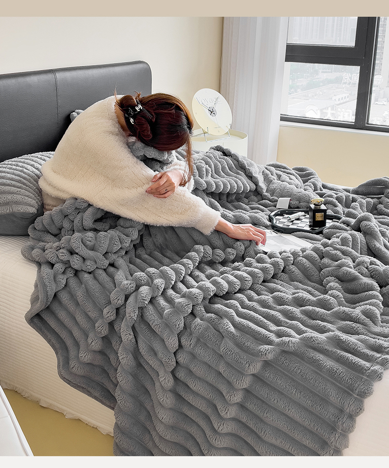 商品名称:亚龙工厂店 2025新款时尚活性抗静电兔绒毛毯毯子 兔毛银灰