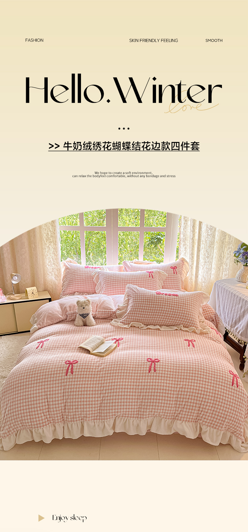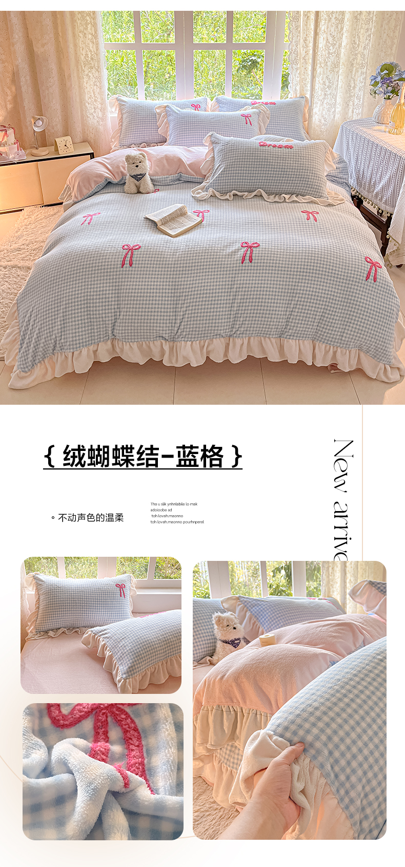 当前位置: 91家纺网 > 商品网购 > 床品套件 > 四件套 > 牛奶绒四件套 > 沐辰 2025新款牛奶绒绣花蝴蝶结花边款四件套 绒蝴蝶结-绿格